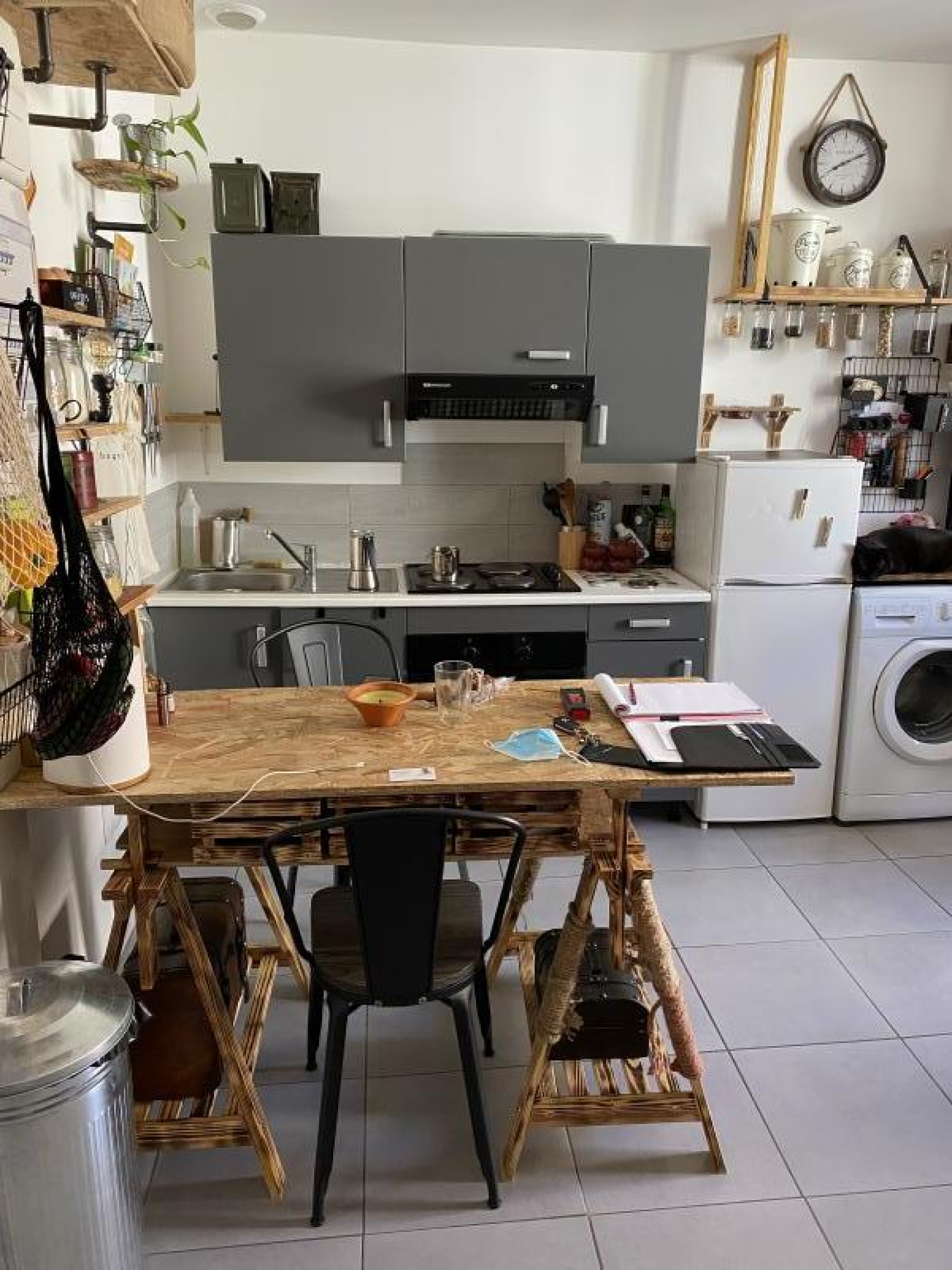 -Au premier étage un deuxième appartement numéros 2 d'une surface de 38m² comprenant une pièce à vivre avec coin cuisine , une chambre et une salle d'eau WC. Appartement loué 390€