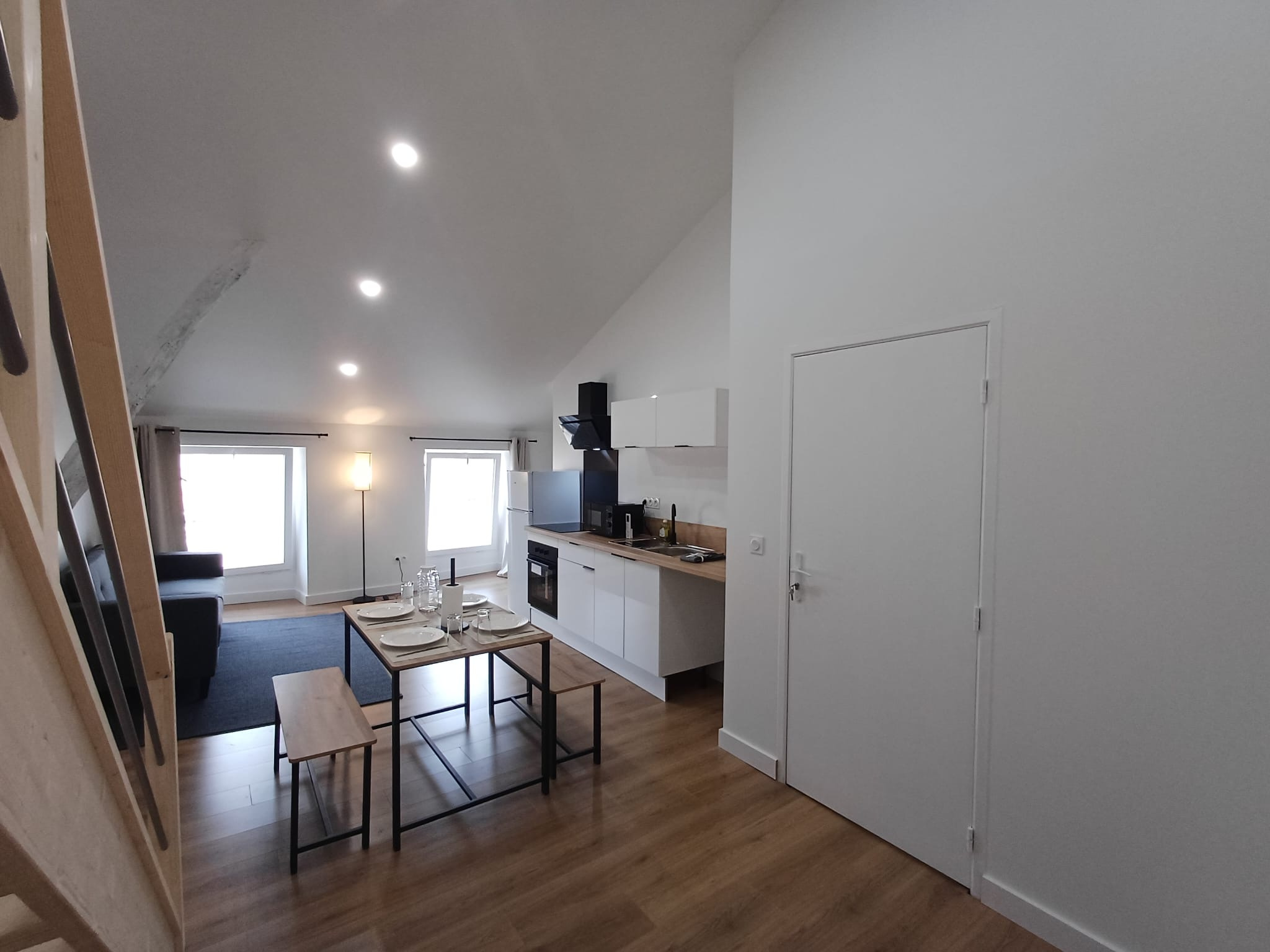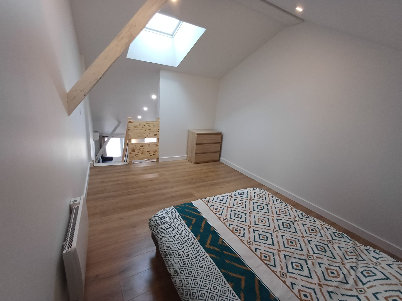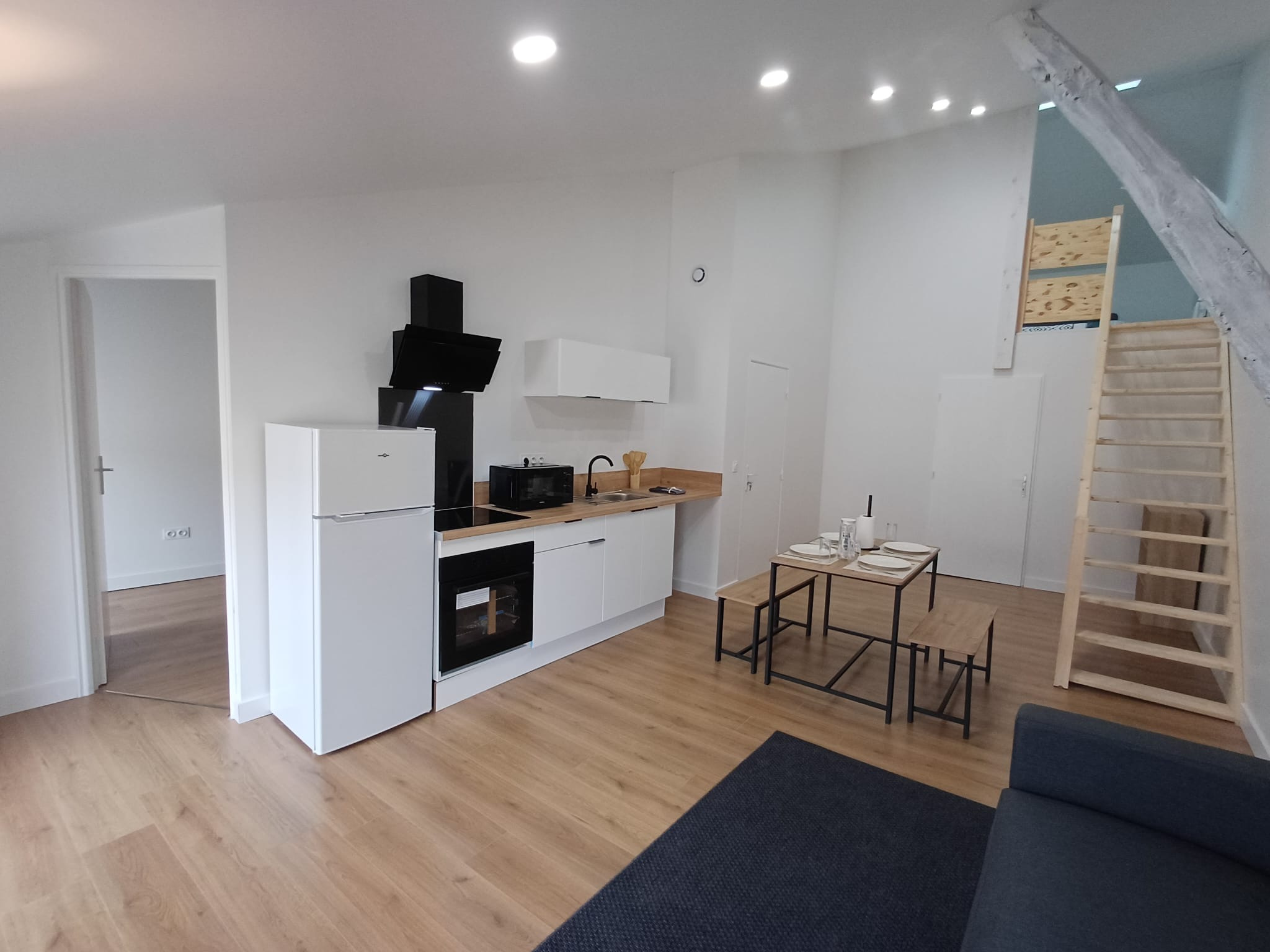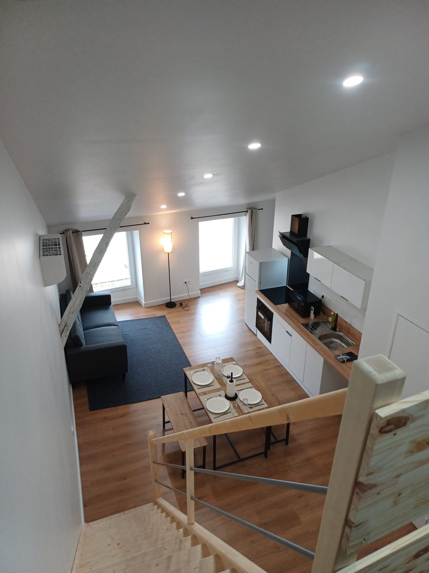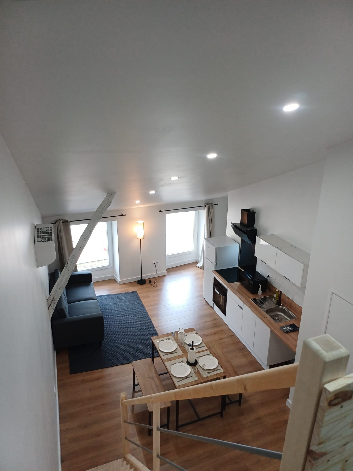 Au dernier étage, un charmant T3 avec mezzanine, entièrement meublé, bénéficiant d’une climatisation réversible pour un confort optimal en toute saison.