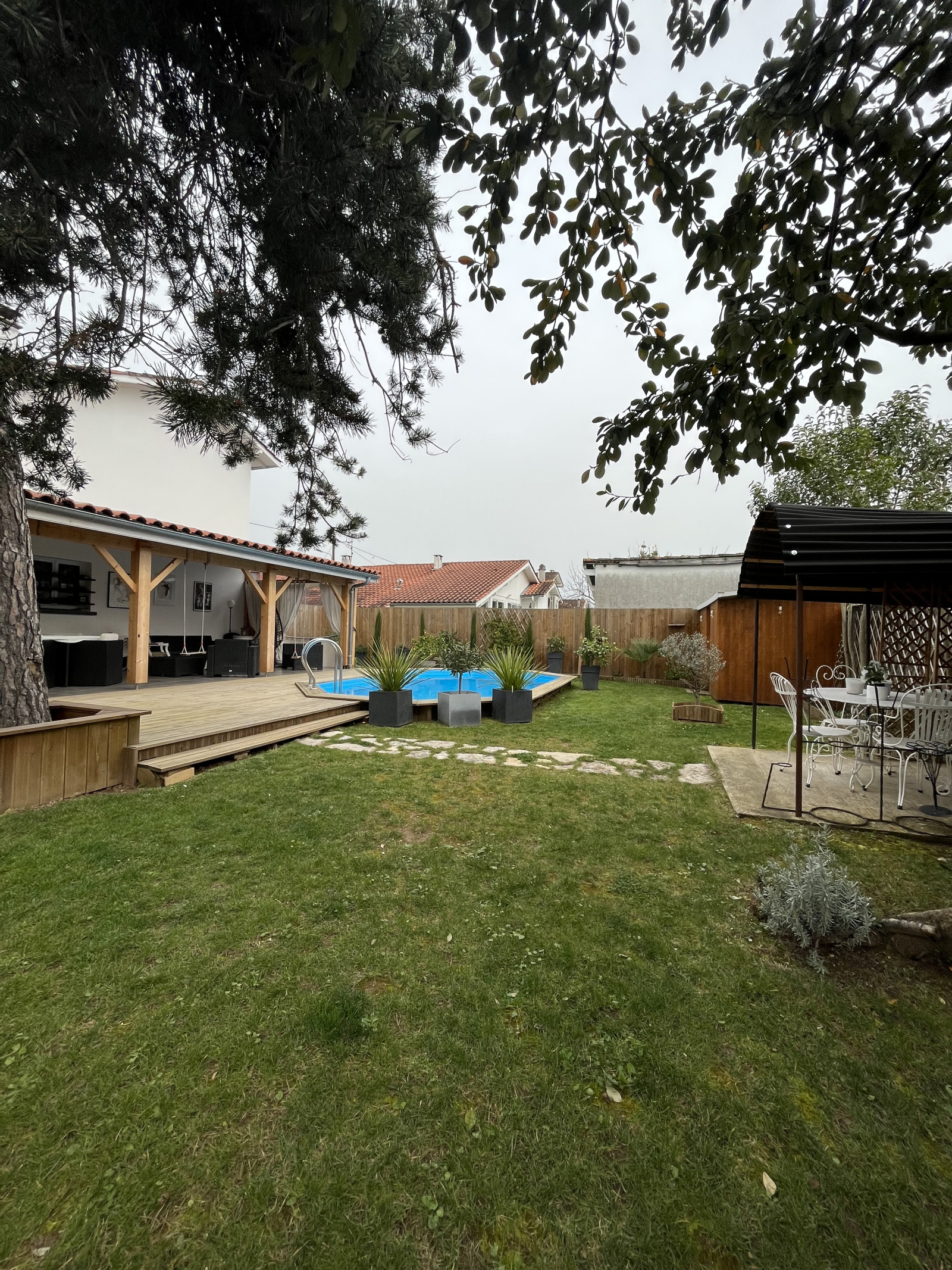 Véritable havre de paix pour cette maison de style Basque d'une surface habitable de 115m², proche de toutes commodités, entièrement redécorée au goût du jour offrant en Rdc une cuisine ouverte sur un salon séjour avec poêle à bois, une chambre et une salle d'eau. A l'étage 3 chambres et une salle de bain. Une terrasse carrelée d'une surface de 28m² potentiellement aménageable en surface habitable. Un garage de 17.71m², piscine coque de 3.5 par 5.90 sur 1.30m de haut le tout sur un jardin clos de 513m² .
