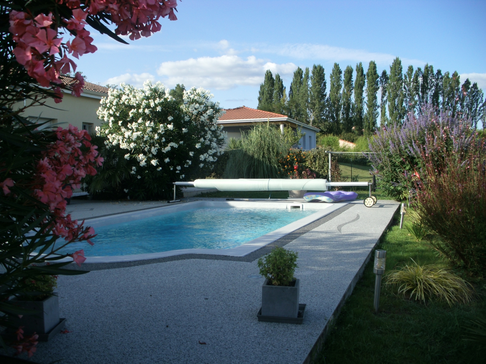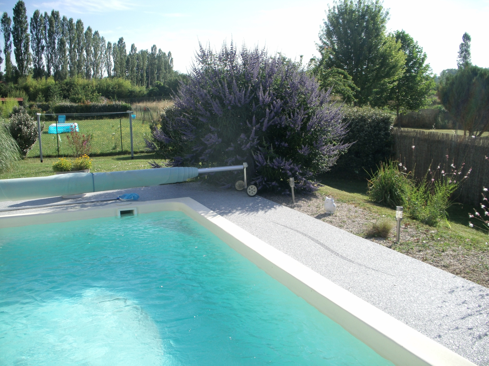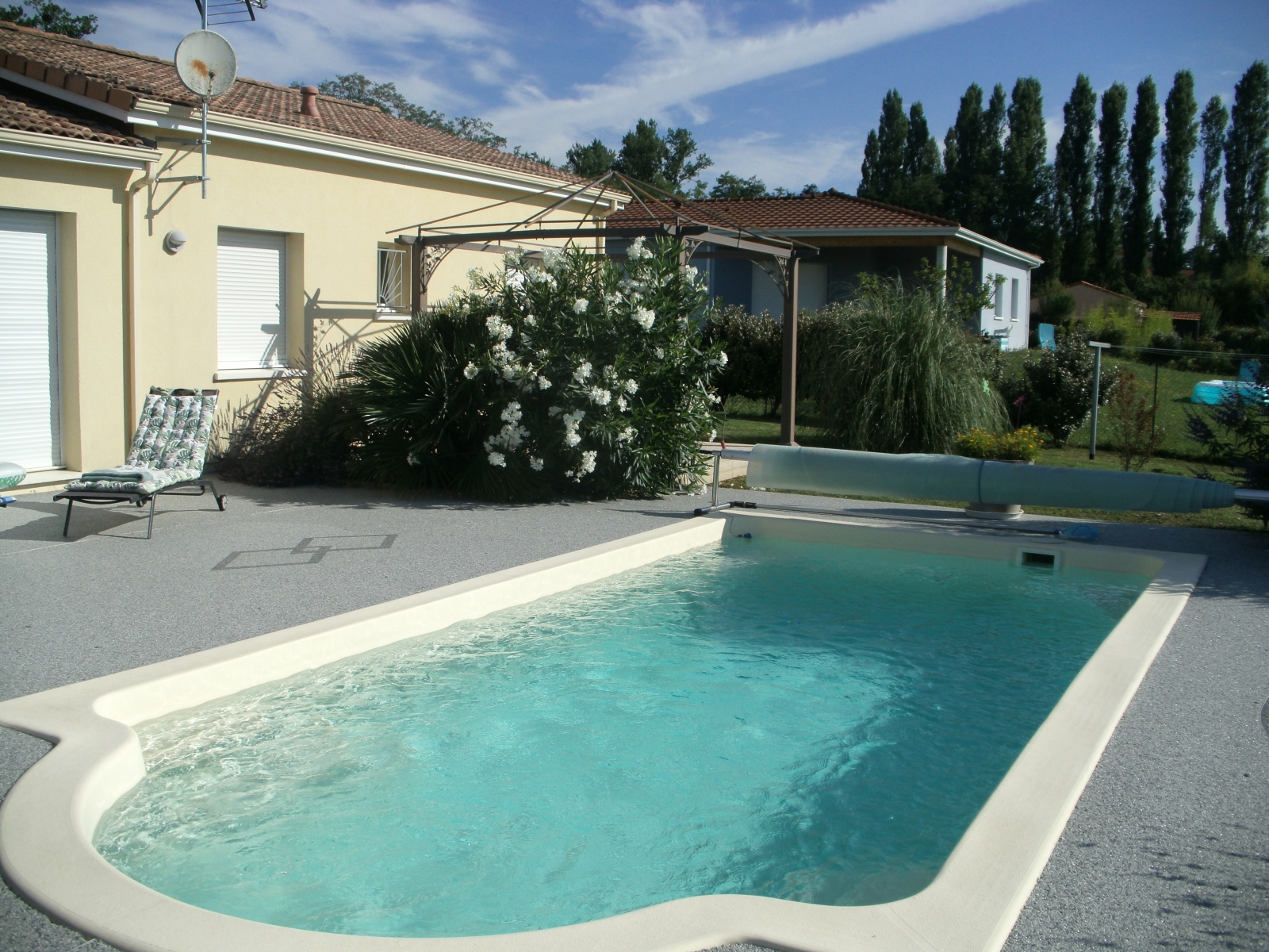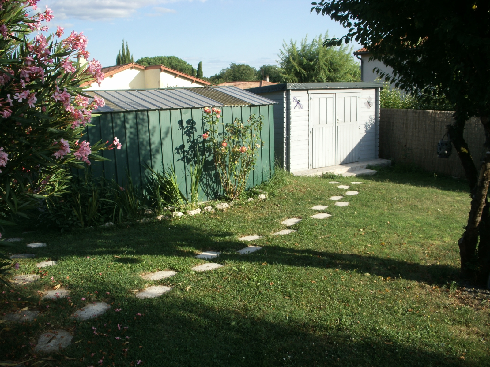 Le terrain est entiérement clos avec un abris de jardin et d'une piscine coque de 3.5/7 avec plage résine, portail électricque. Assainissement conforme ( Tout à l'égout).