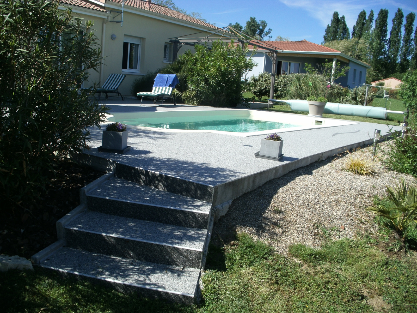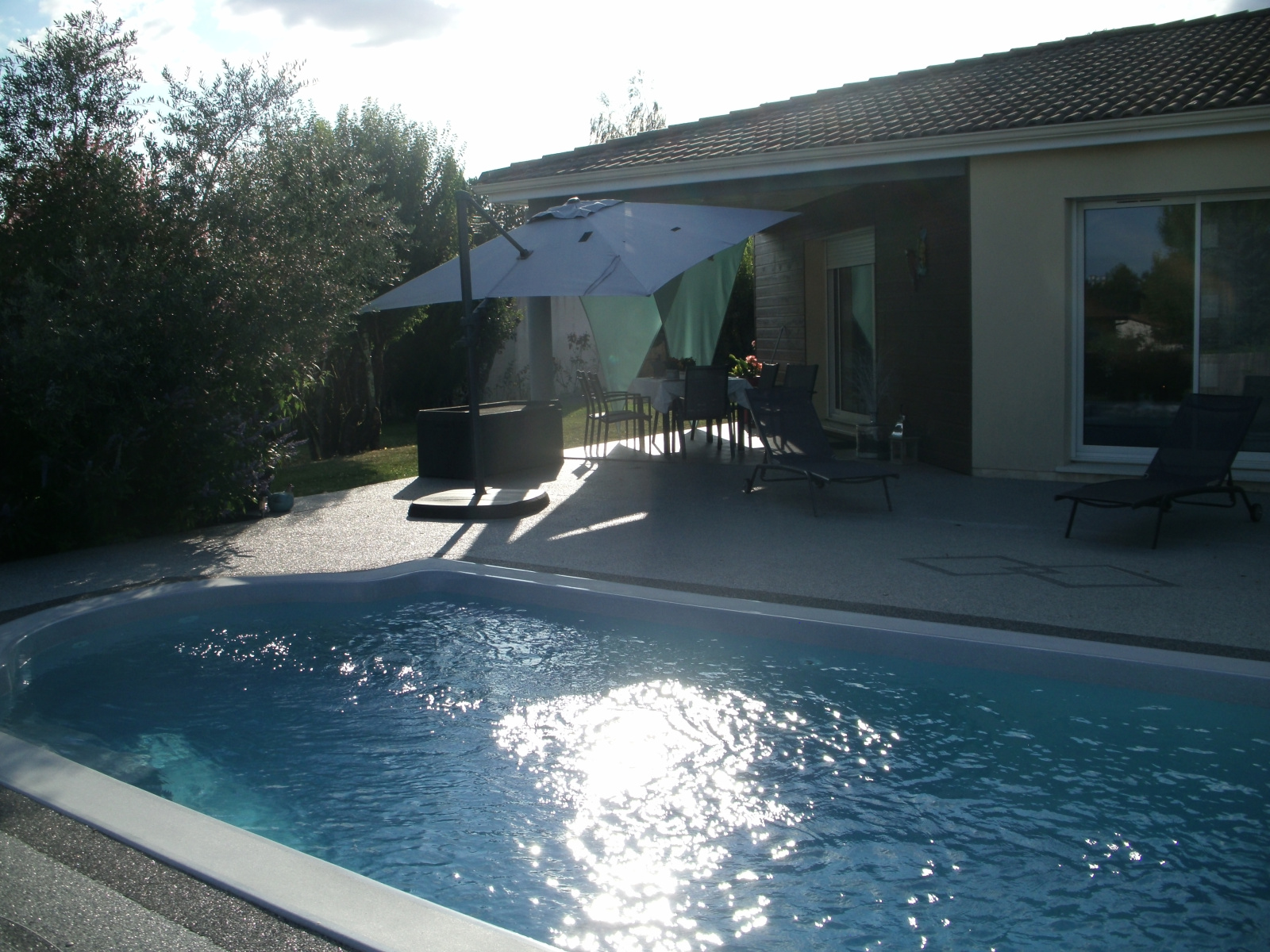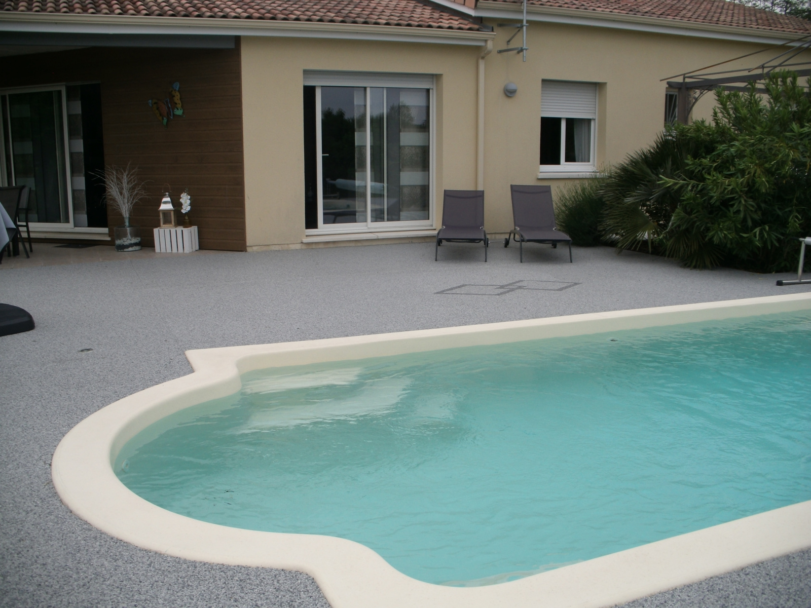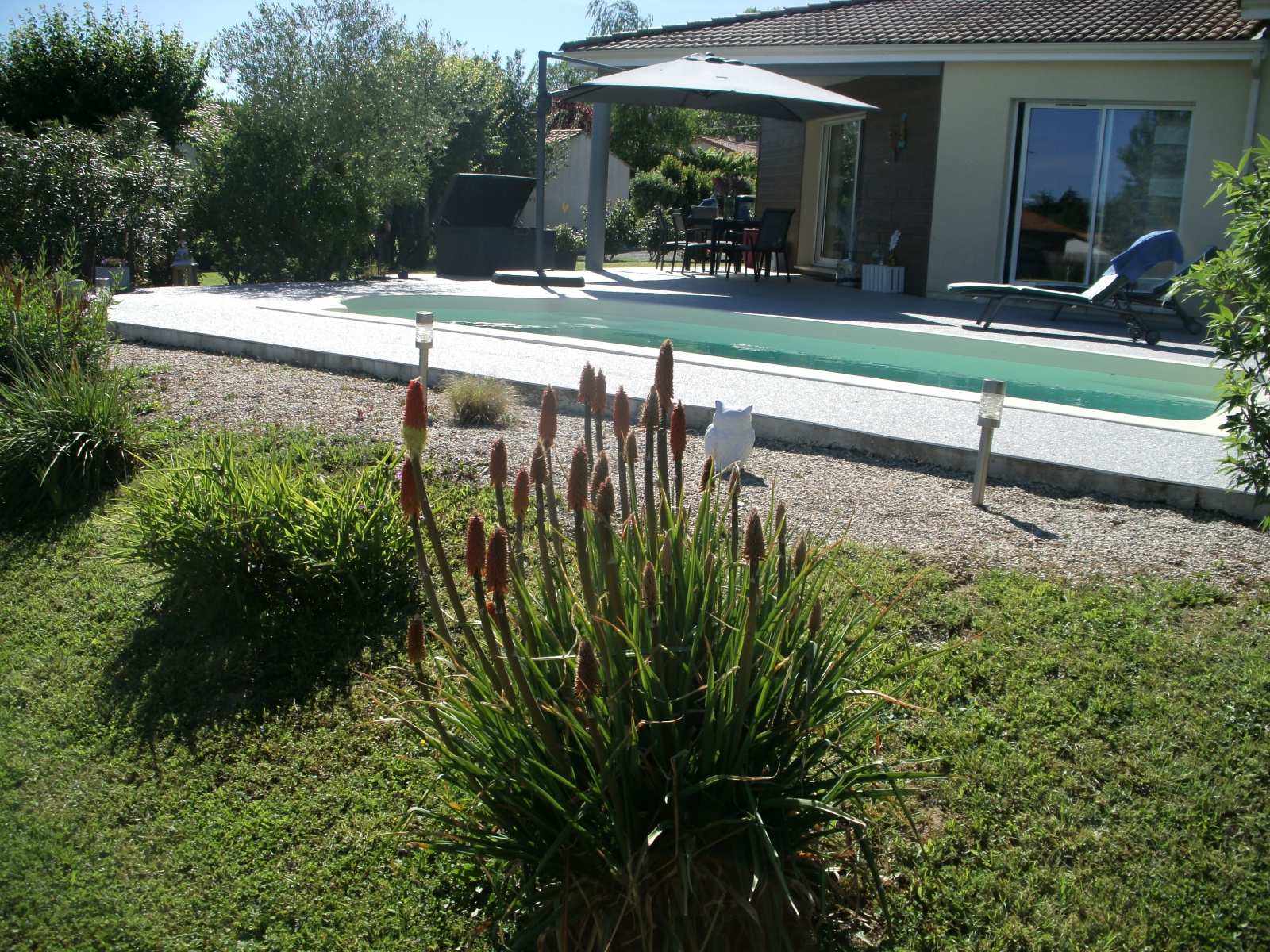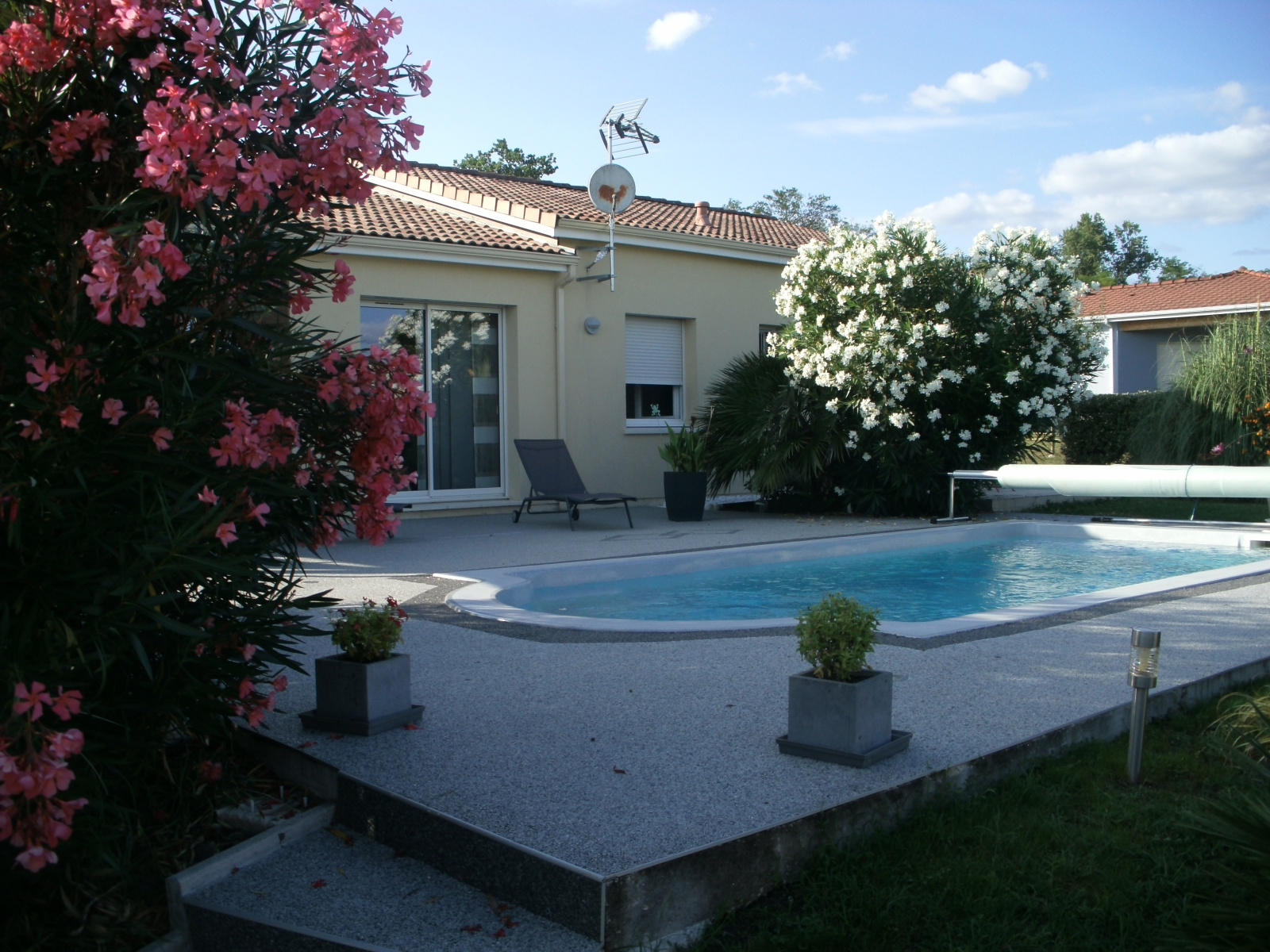 Le terrain est entiérement clos avec un abris de jardin et d'une piscine coque de 3.5/7 avec plage résine, portail électricque. Assainissement conforme ( Tout à l'égout).