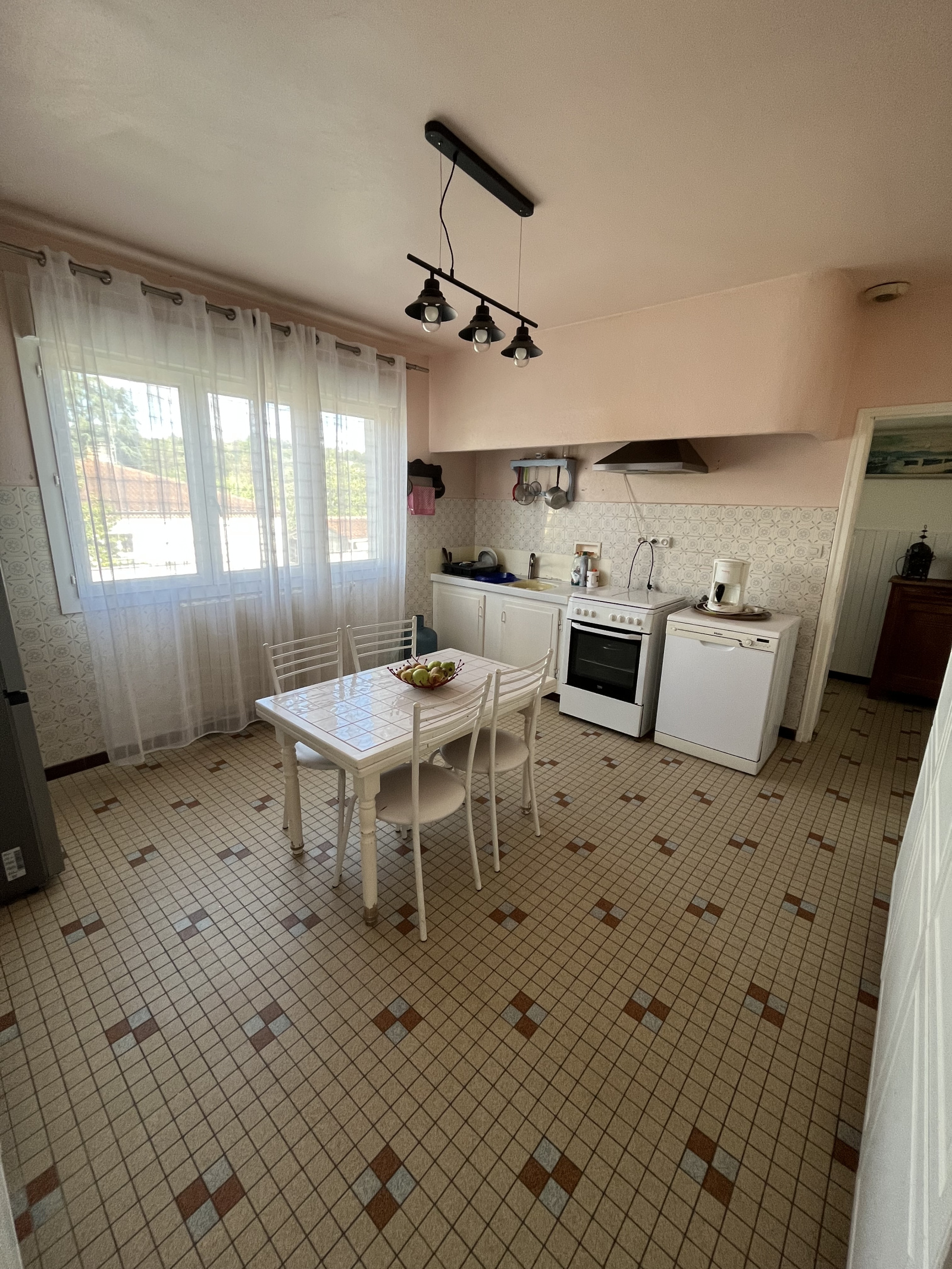 Maison sur deux niveaux, d'une surface habitable d'environ 110m² offrant au premier étage une entrée sur cuisine indépendante, un salon séjour 3 chambres salle d'eau et wc individuel, au rdc une chambre avec deux garages. Menuiseries doubles vitrages,chauffage gaz de ville.puit.