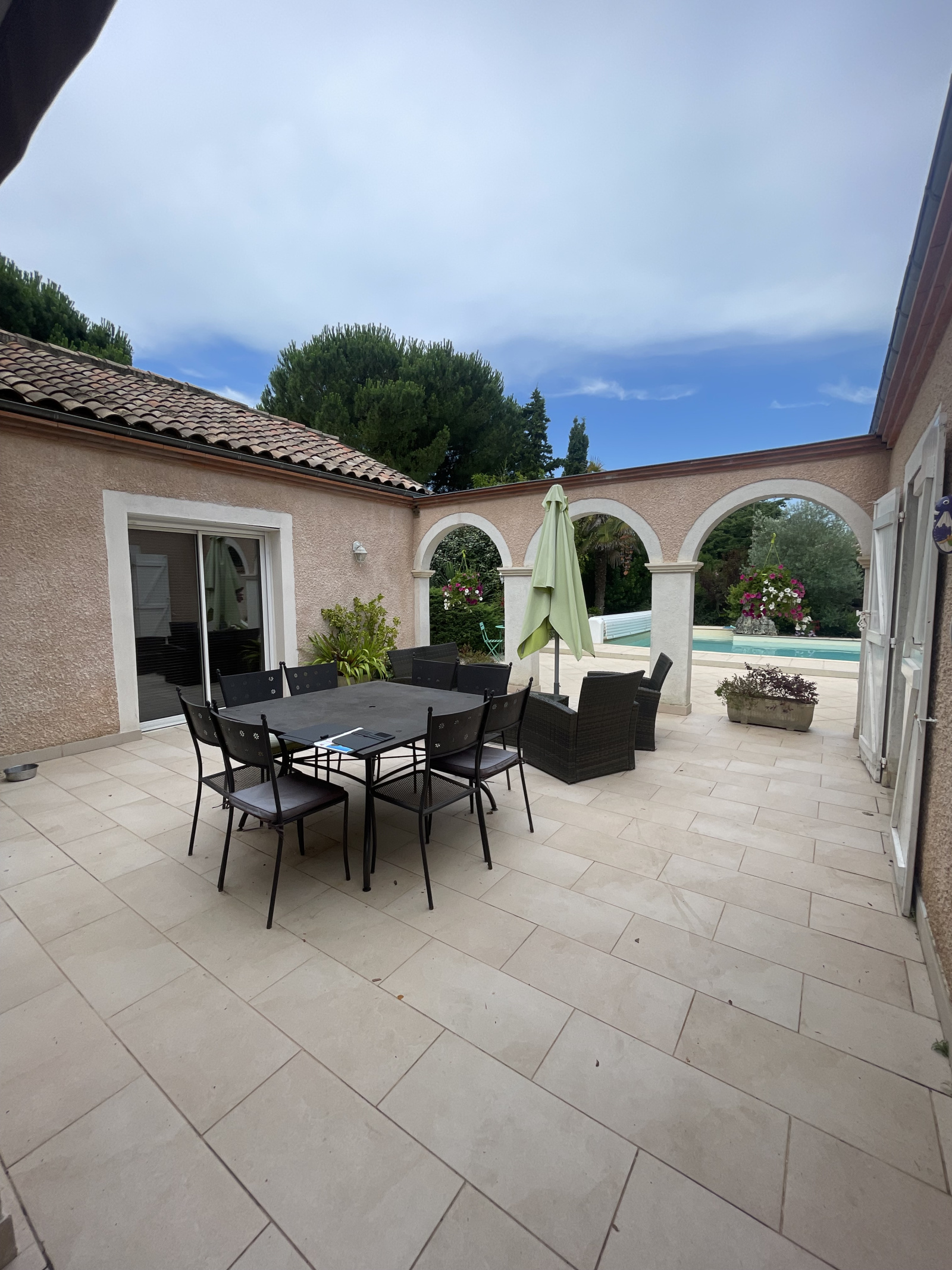 Au cœur du centre-ville très jolie maison de plein pied de type méditerranéen à 5m des commodités d’une surface de 180m² offrant une véranda , desservant une pièce à vivre qui donne accès à un magnifique patio vu sur la piscine ,une cuisine ouverte , un dégagement donnant sur 3 chambres, un salle de bain, un WC. Une 4 éme chambre au 1er étage.