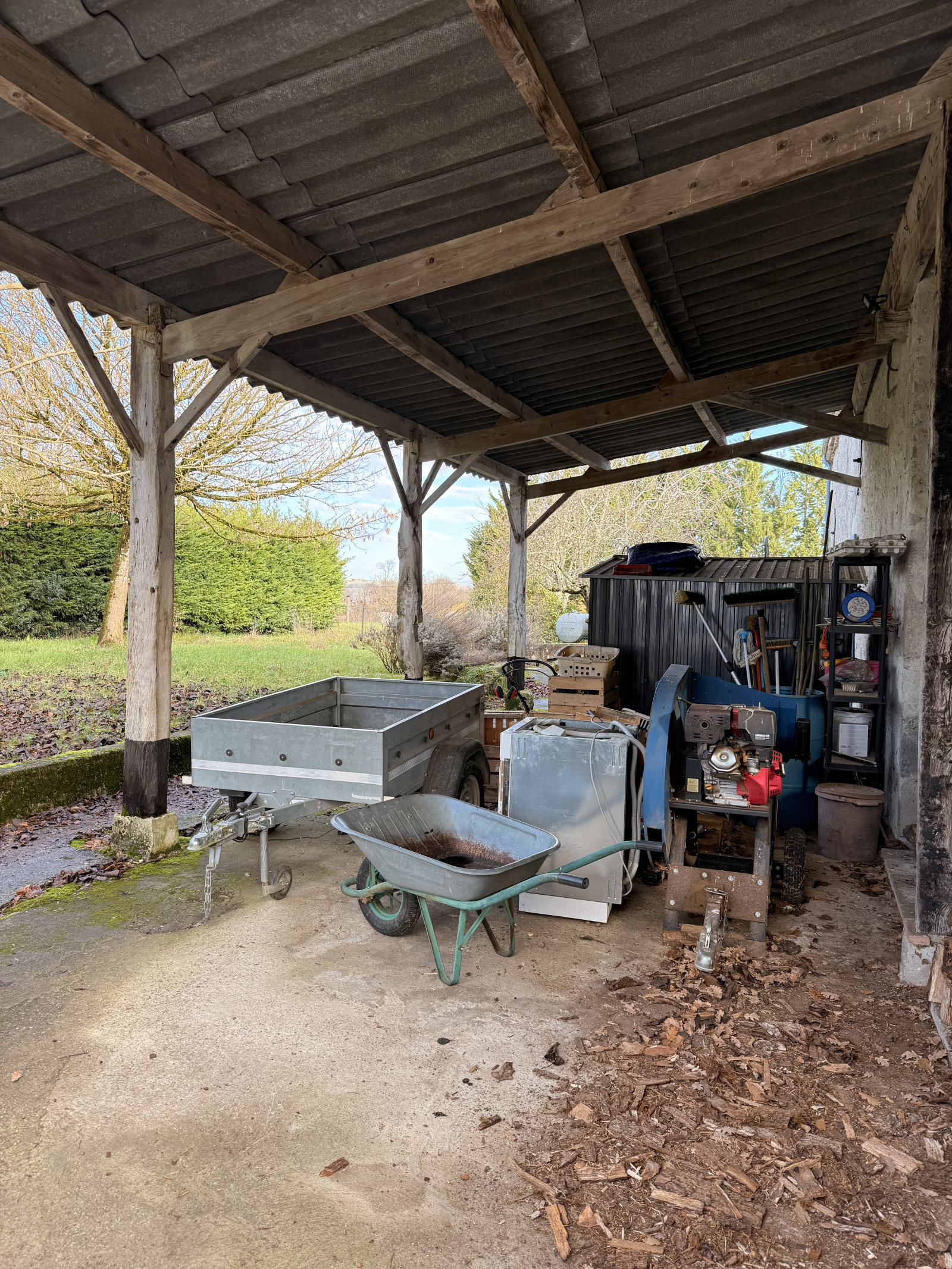 À l’extérieur, la propriété propose également une terrasse arrière, un espace couvert ainsi qu’un abri de jardin, idéal pour le rangement du matériel de plein air.