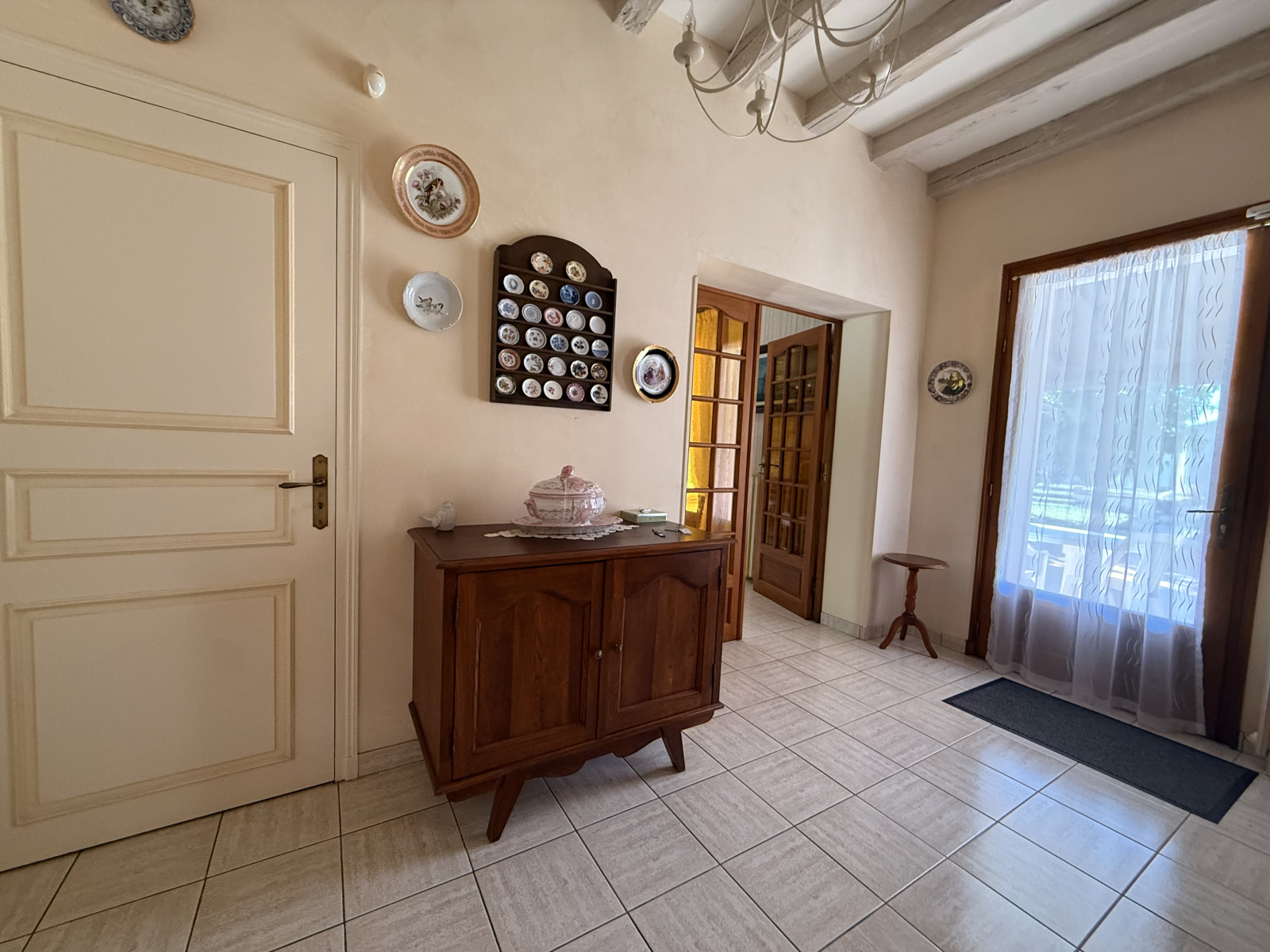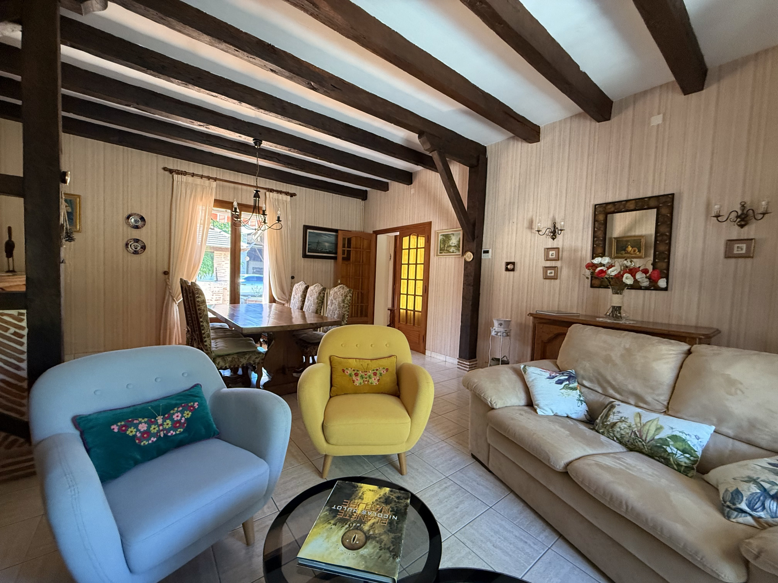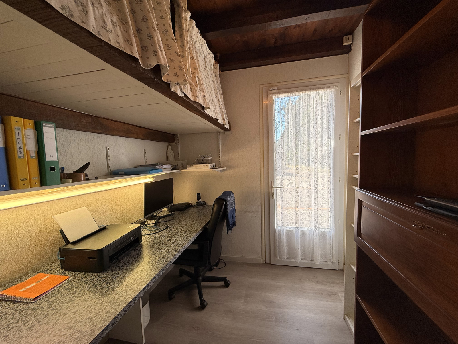 La maison comprend une entrée, un salon-séjour lumineux, une cuisine indépendante, quatre chambres dont une suite avec salle d’eau, une salle d’eau supplémentaire, un bureau et une buanderie. Les volumes sont bien répartis, offrant confort et praticité.
