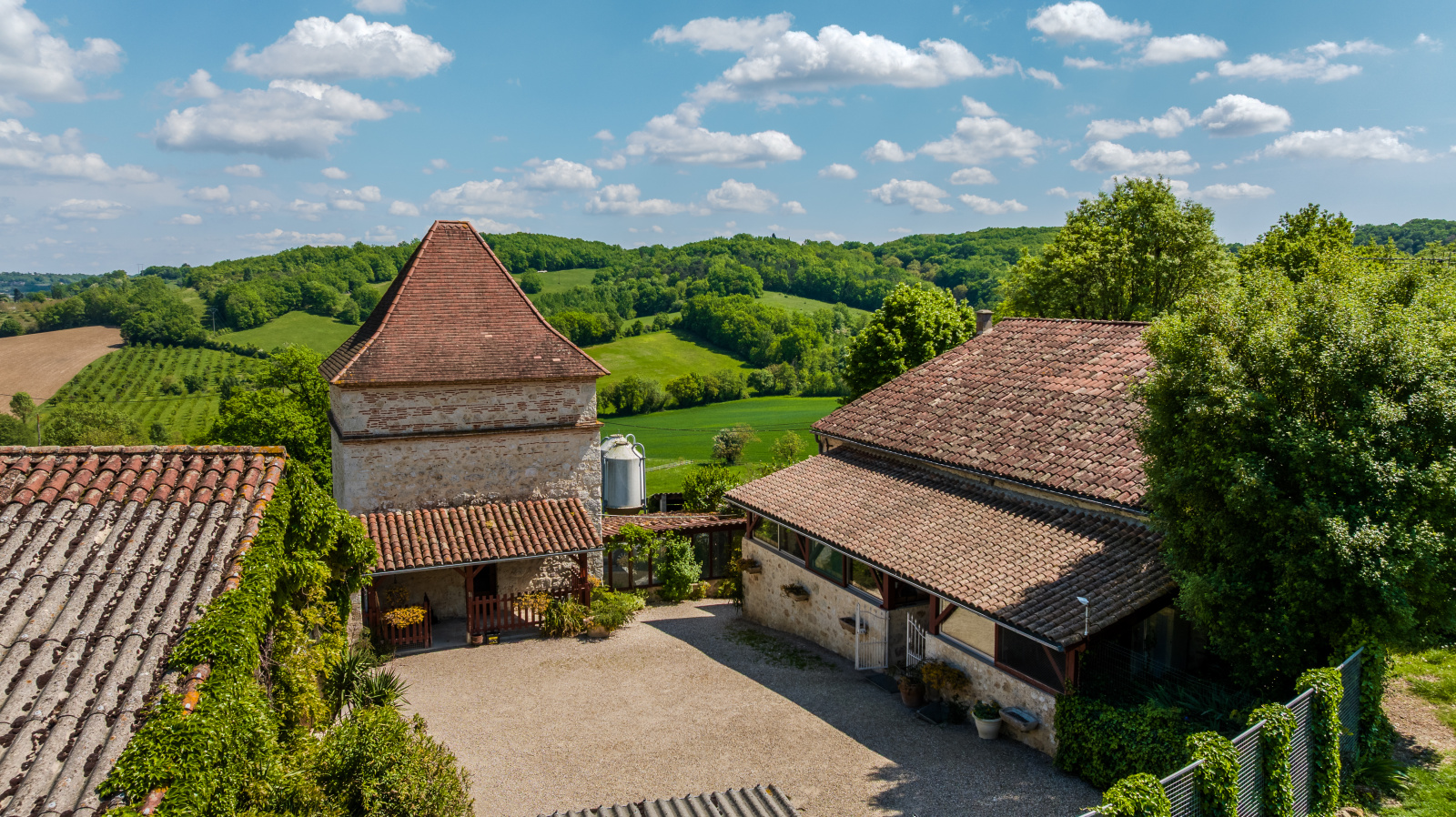 La propriété comprend également un superbe pigeonnier, ajoutant un cachet unique à l’ensemble.
