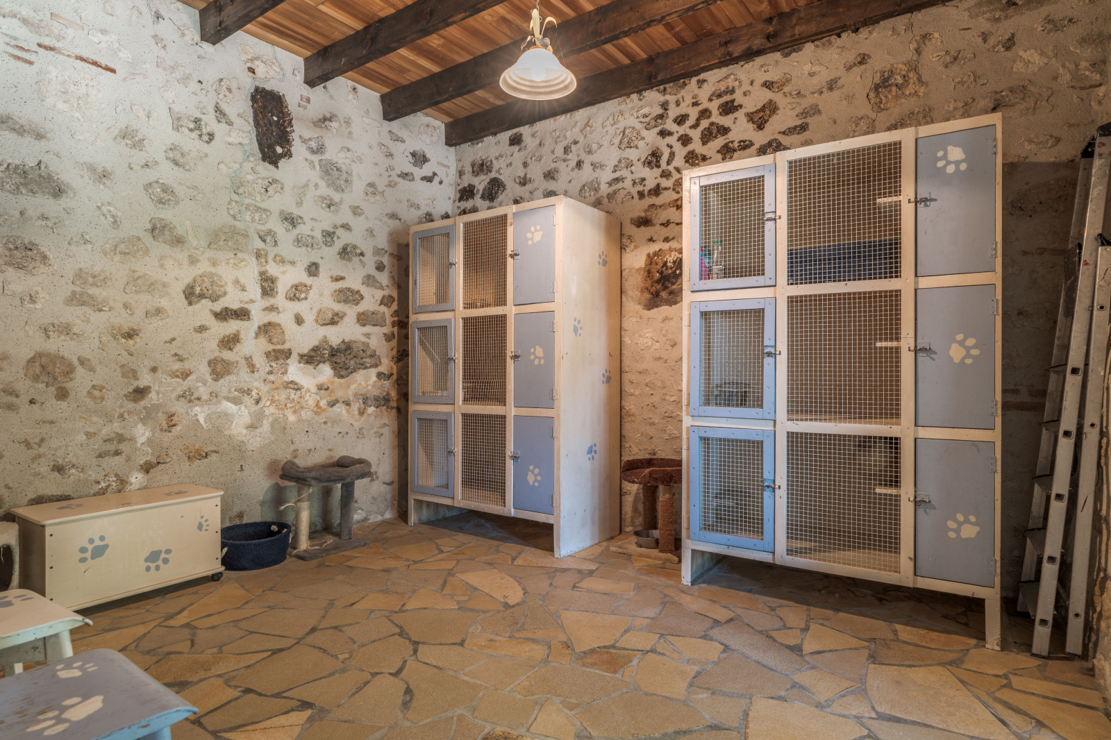 Côté installations équestres, vous trouverez une grande grange aménagée avec des box à chevaux, ruisseau, idéale pour accueillir vos équidés dans les meilleures conditions. Les vastes prairies sont parfaitement adaptées à leur bien-être, avec des abris déjà en place.
