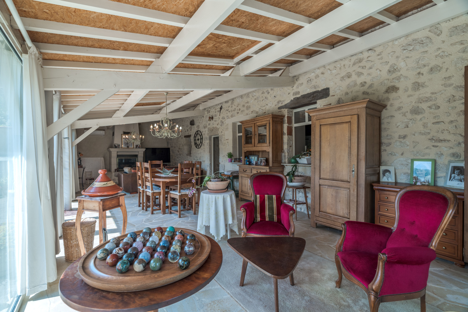 Implantée au centre du domaine, la maison principale en pierre, en bon état général, allie charme et authenticité. Elle bénéficie de menuiseries en double vitrage ainsi que d’un système de chauffage performant par pompe à chaleur, garantissant confort et efficacité énergétique.