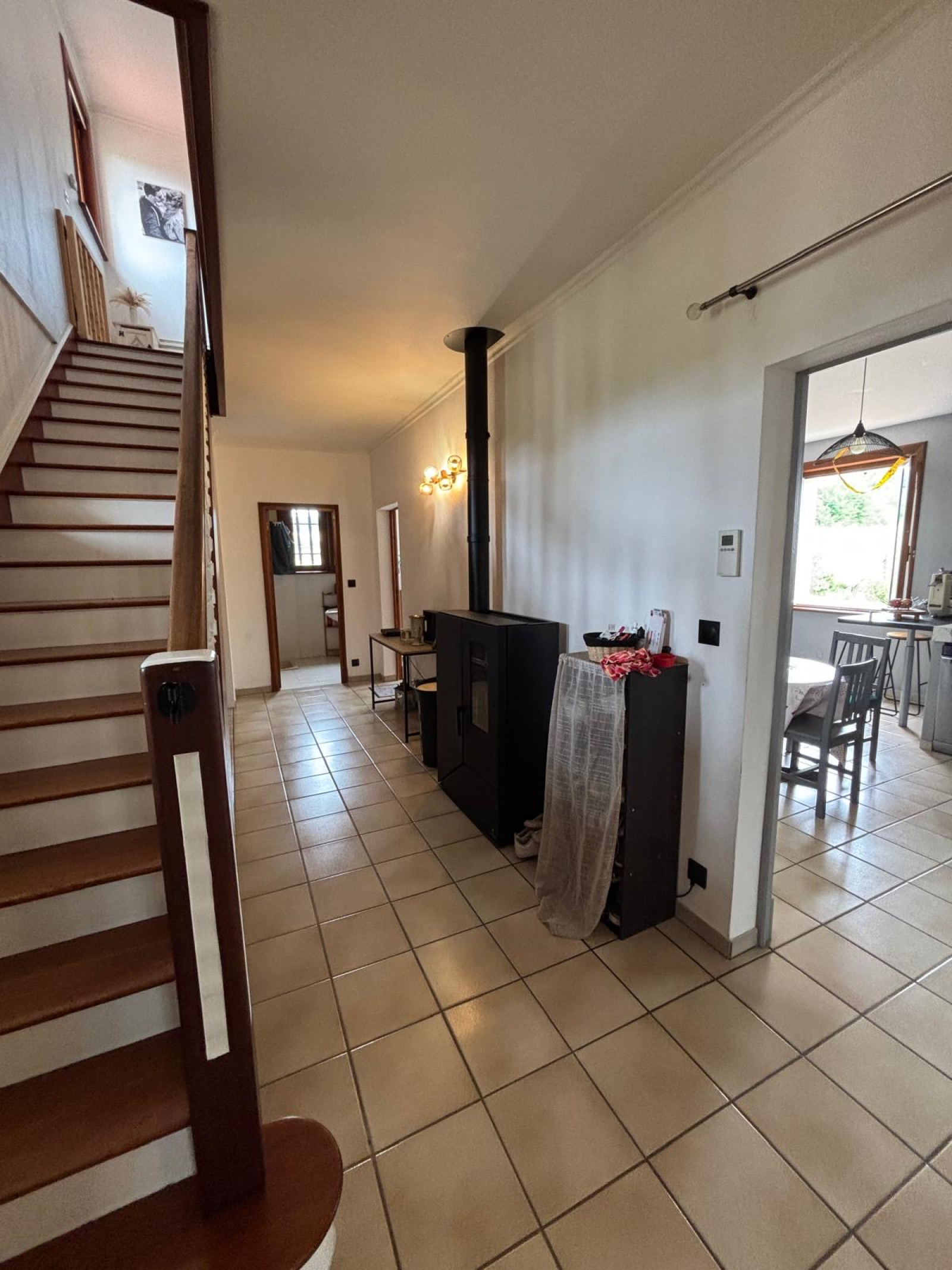 Le bien est équipé d'un poêle à bois assurant un chauffage efficace. L'ensemble est en bon état général, avec quelques travaux à prévoir pour améliorer le confort (menuiseries en simple vitrage notamment).