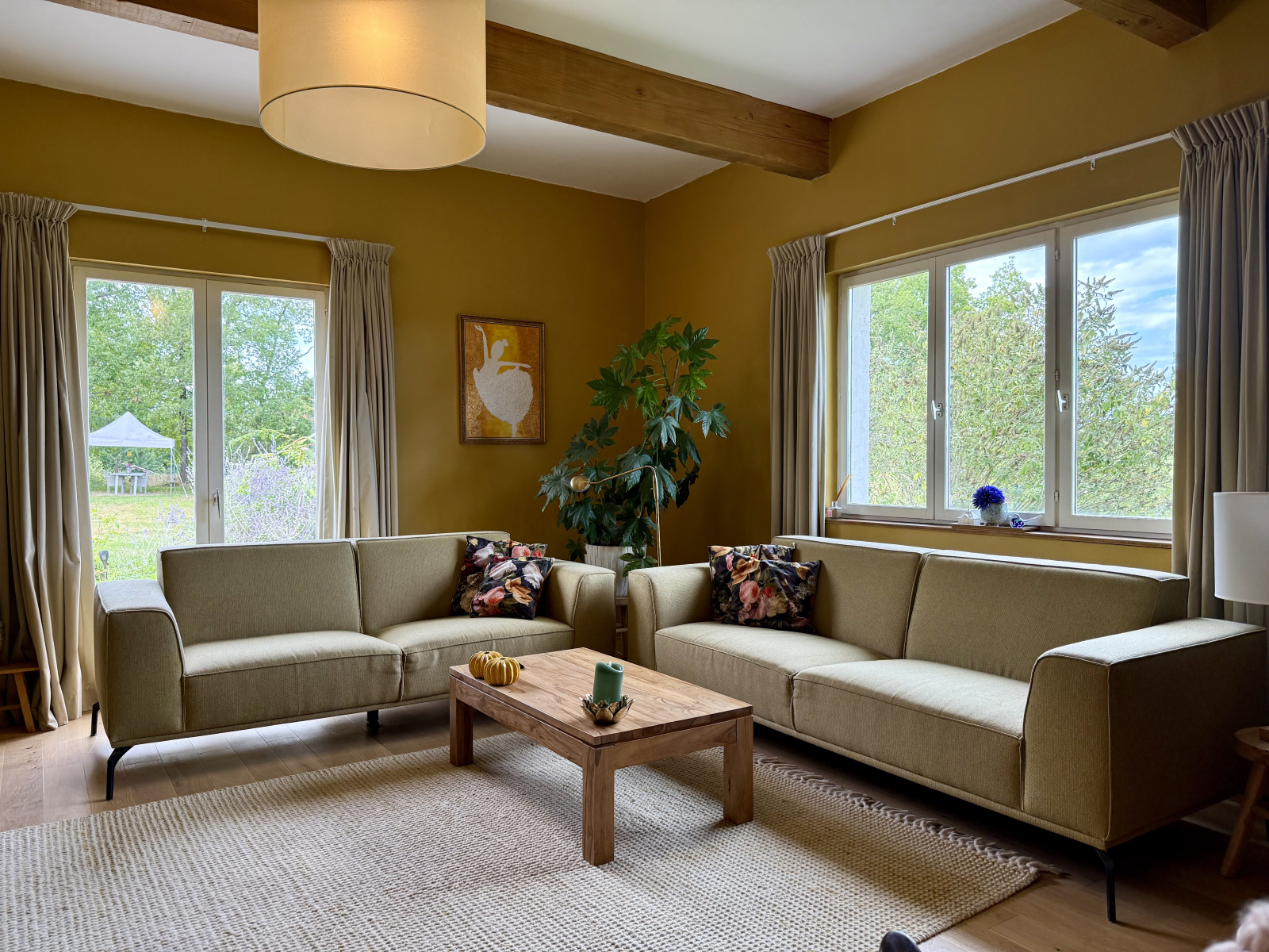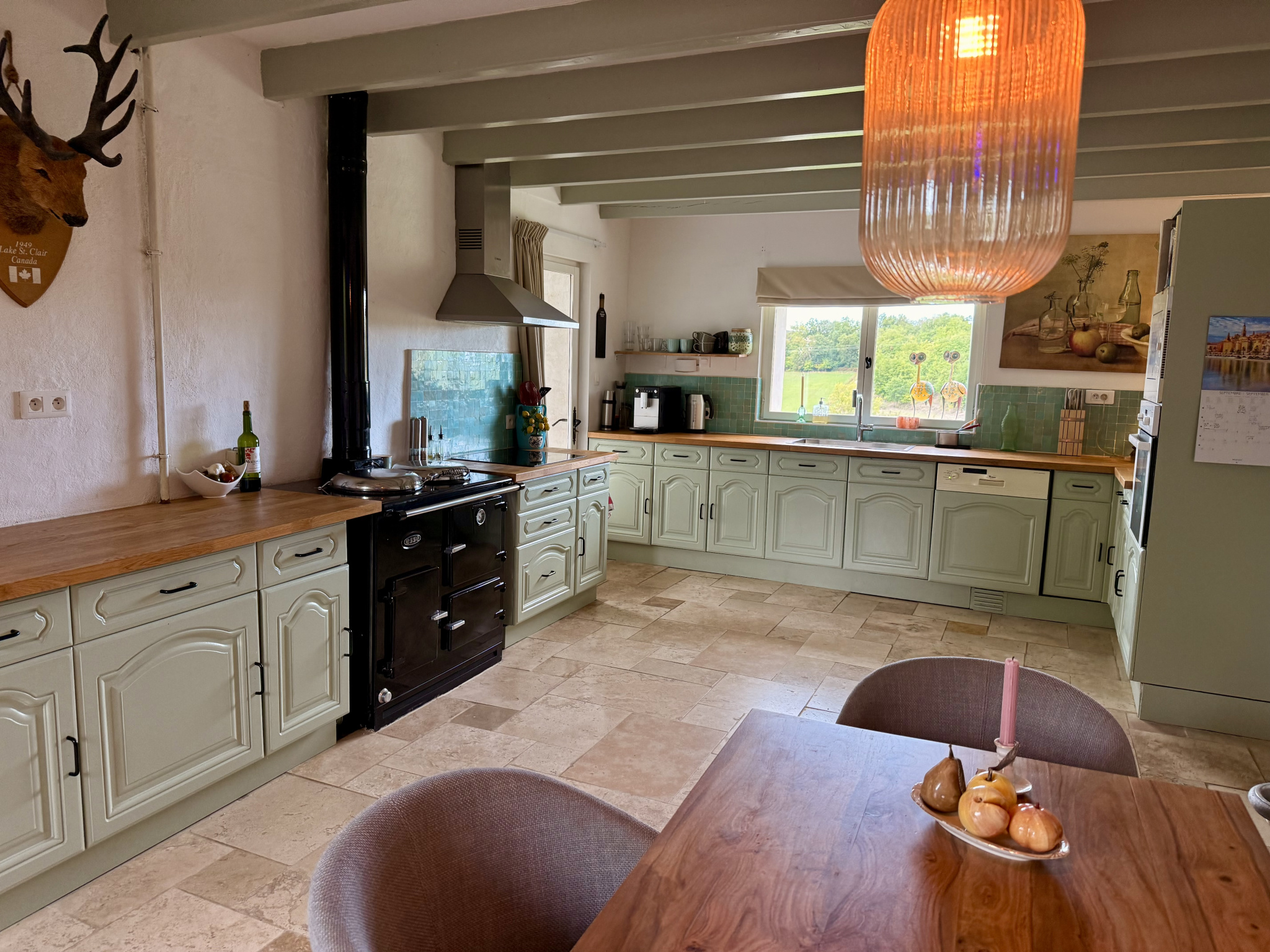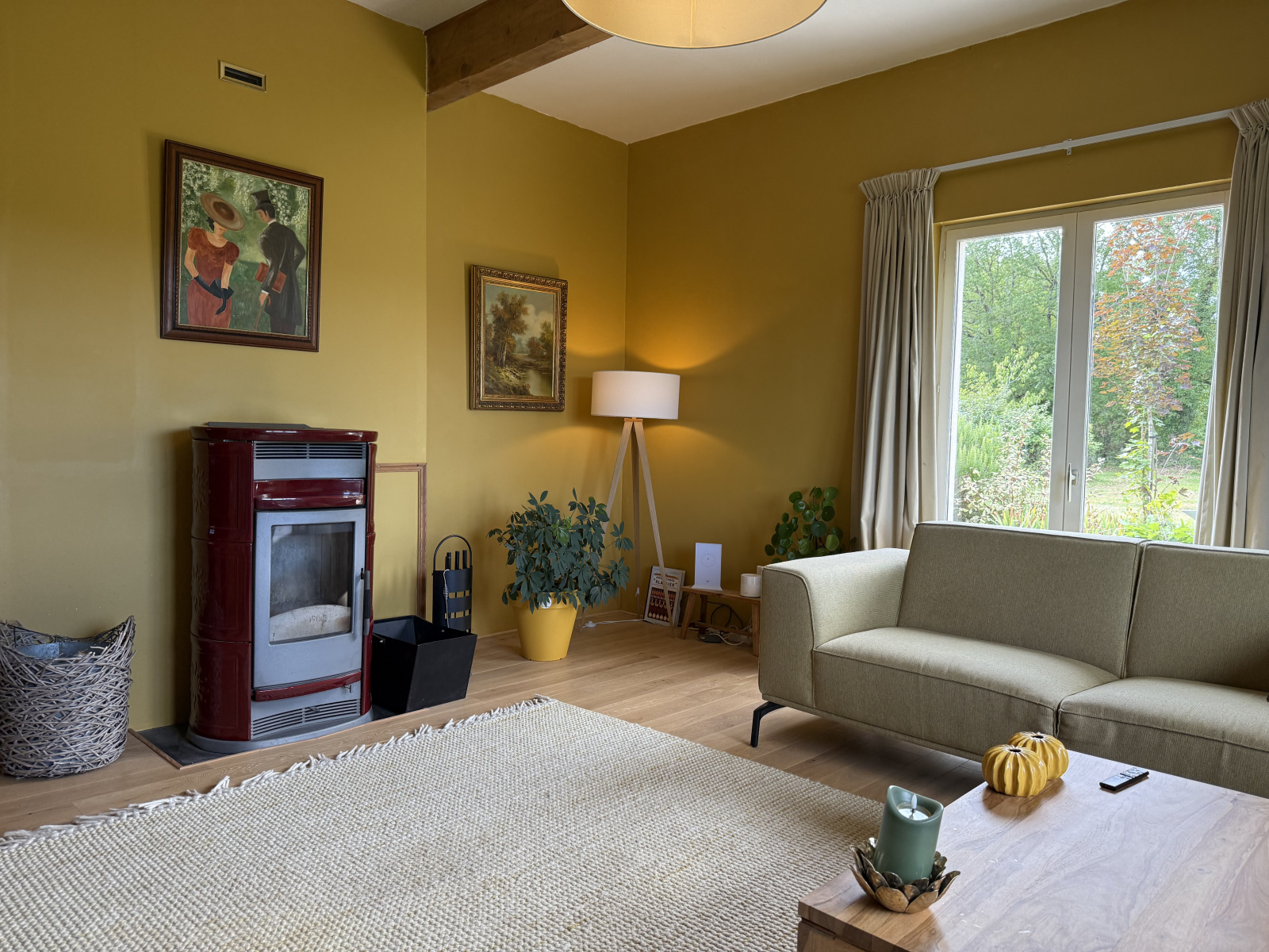 Le confort est assuré toute l’année grâce au chauffage central par pompe à chaleur et aux poêles à bois qui réchauffent les soirées d’hiver.