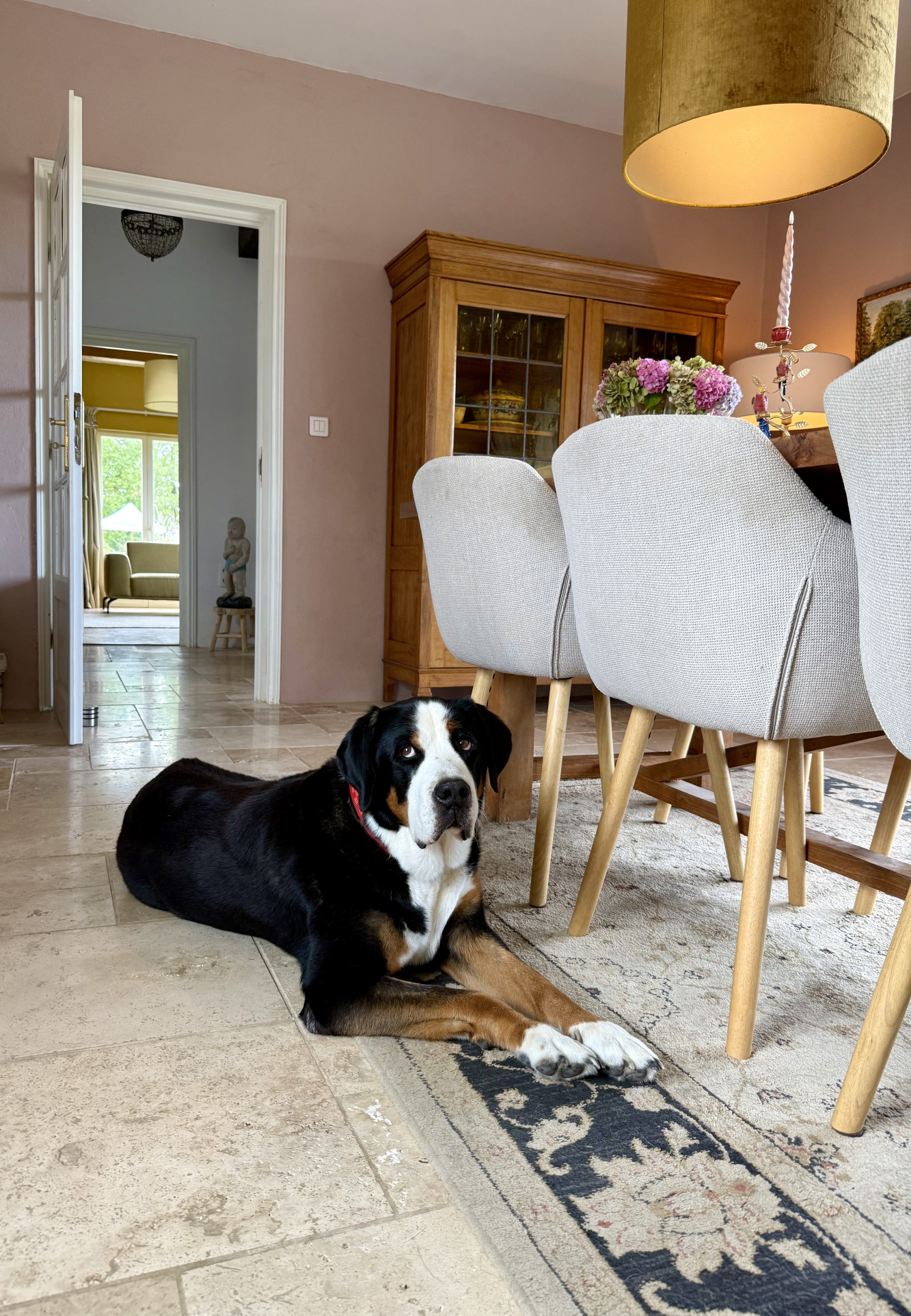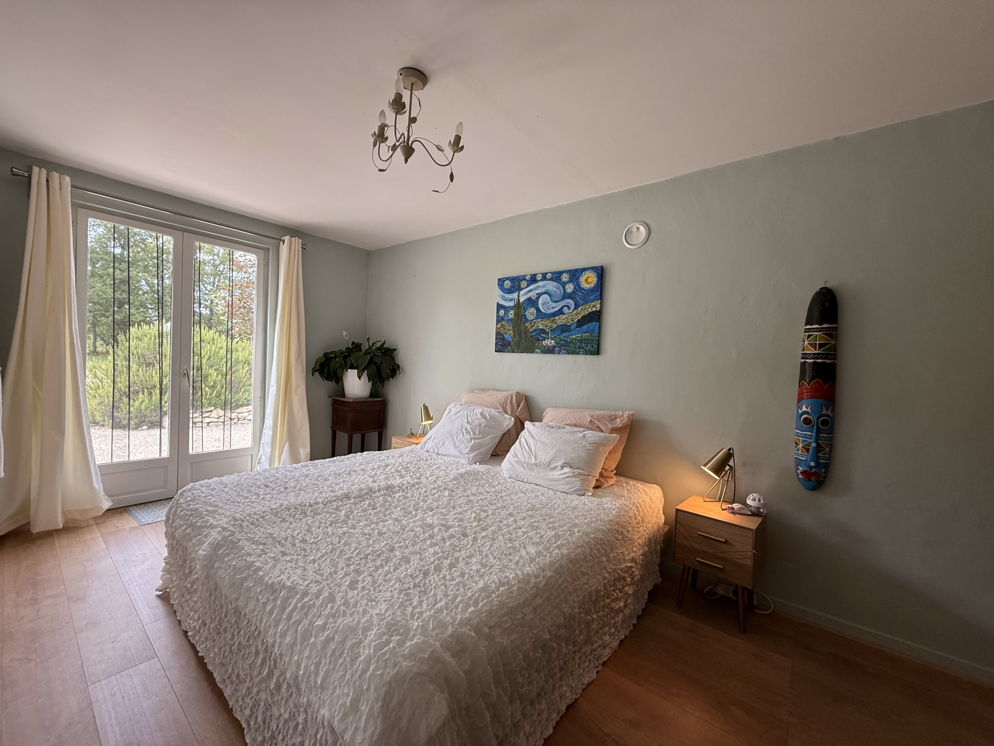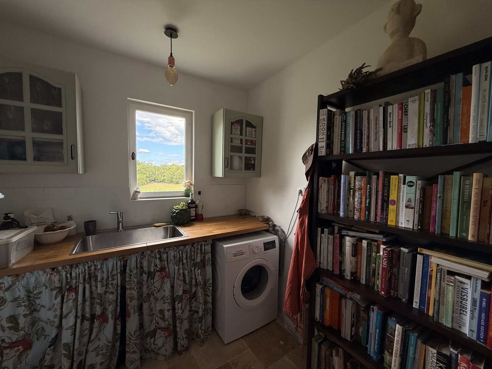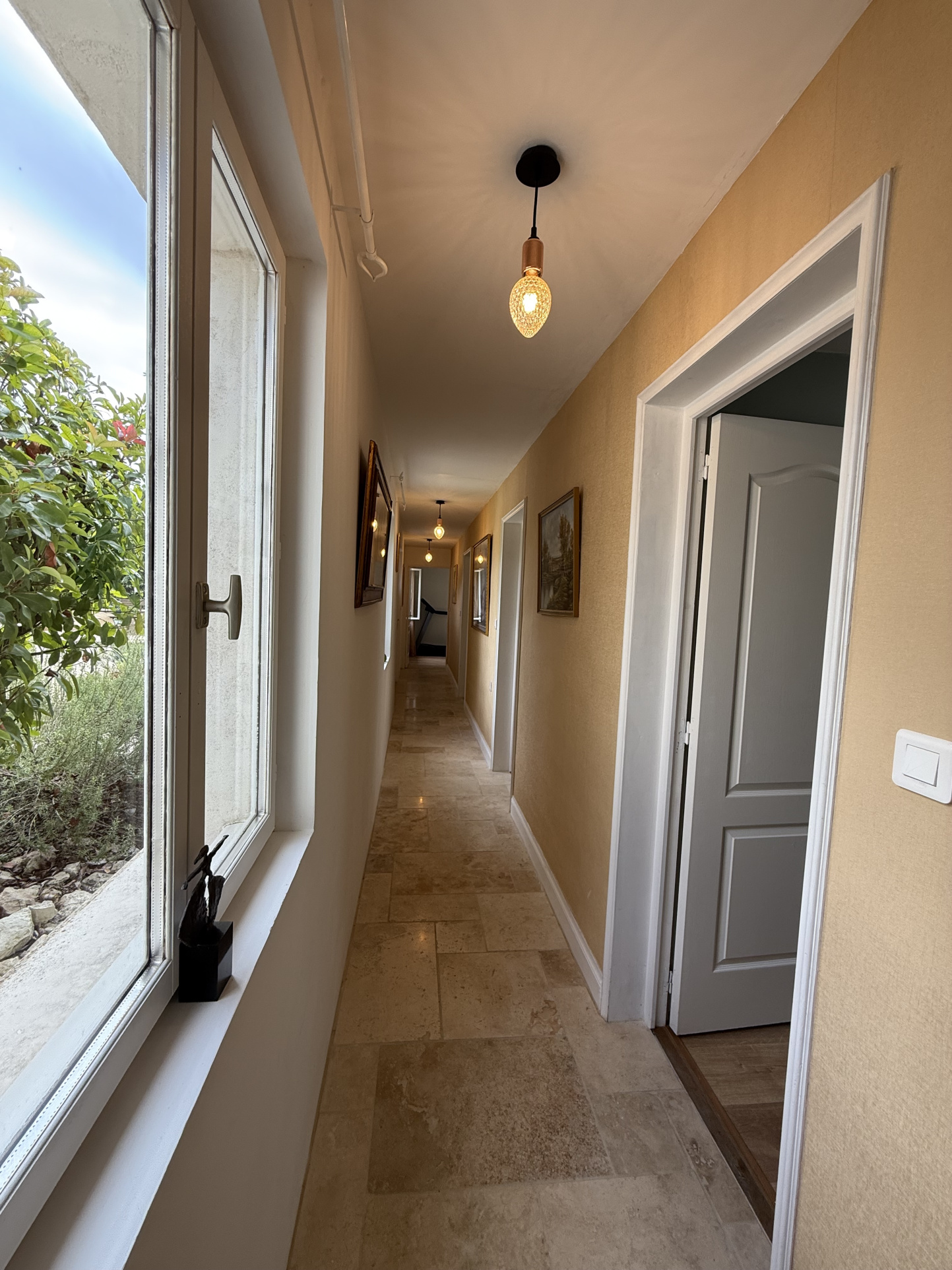 Rénovée avec soin, la maison allie confort moderne et authenticité. Les sols en travertin, le double vitrage et les finitions de qualité témoignent d’une attention particulière portée aux détails. L’habitation se compose de cinq chambres, dont trois suites avec salle de bains privative, une pièce actuellement aménagée en bureau et une autre utilisée comme atelier ou salle de loisirs.