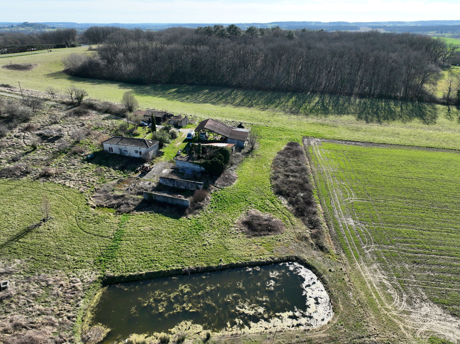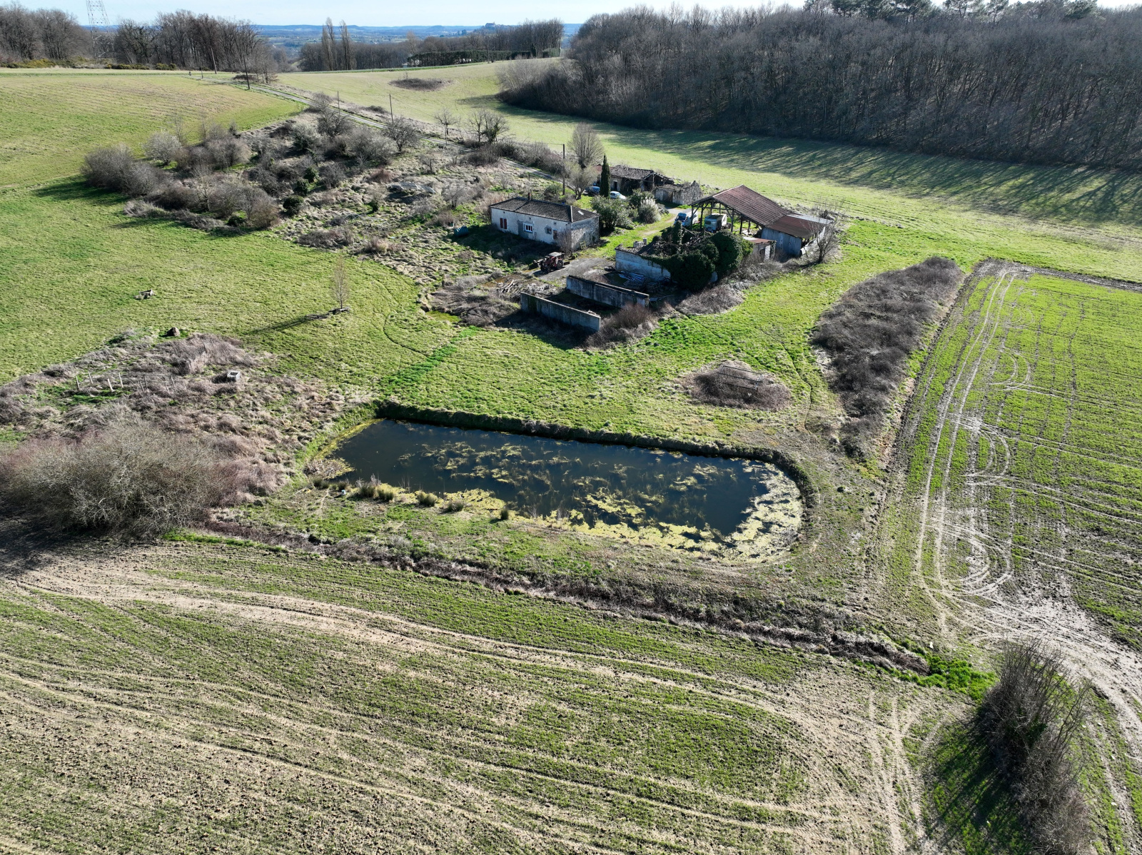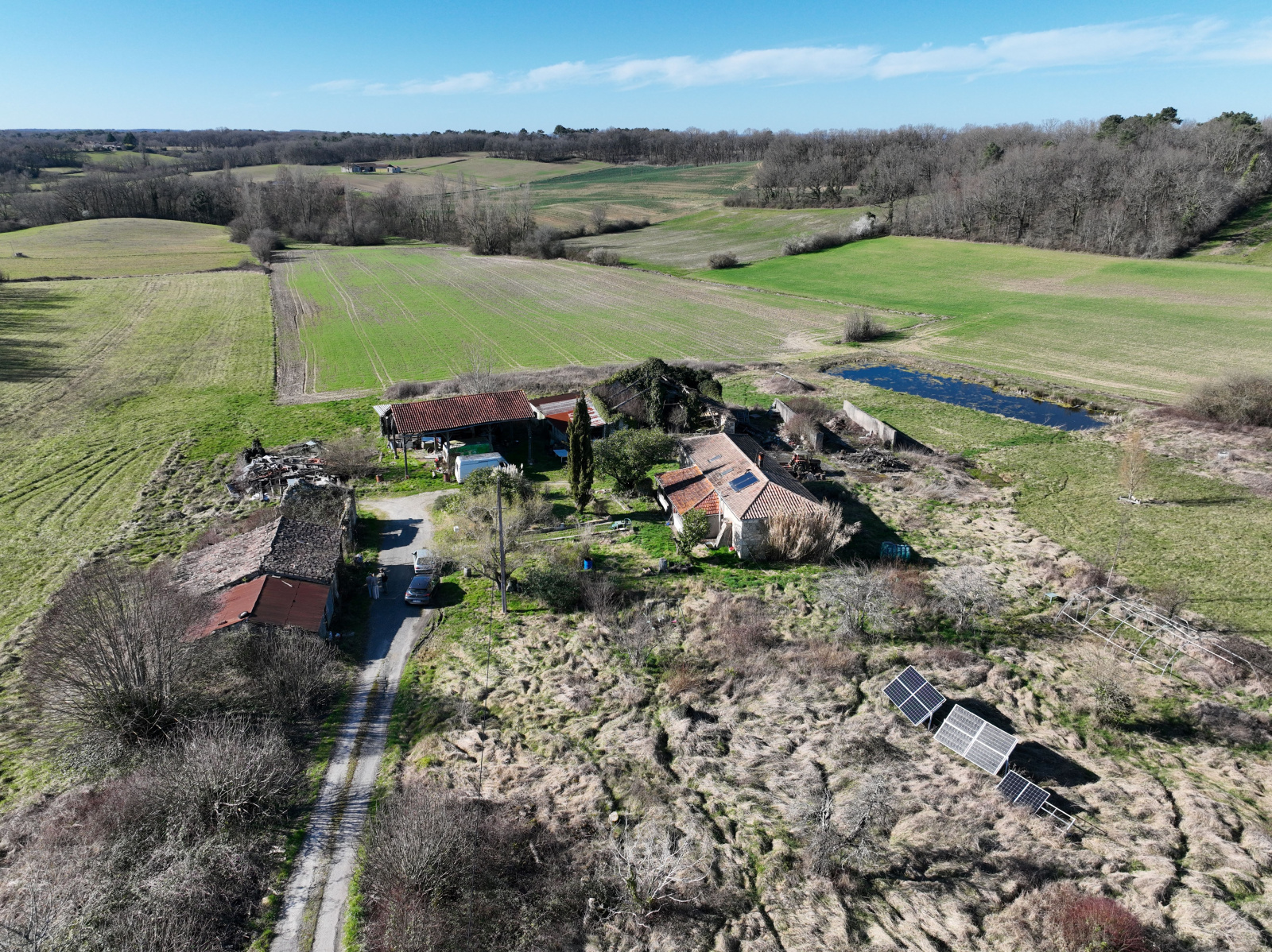 Situé à 5 minutes de monflanquin petite propriété avec lac de 800m². La maison d'habitaion de 120m² possède une cuisine salle à manger un salon une salle d'eau et 3 chambres. Chauffage au bois. la maison nécessite un rafraichissement. Assainissement non conforme.