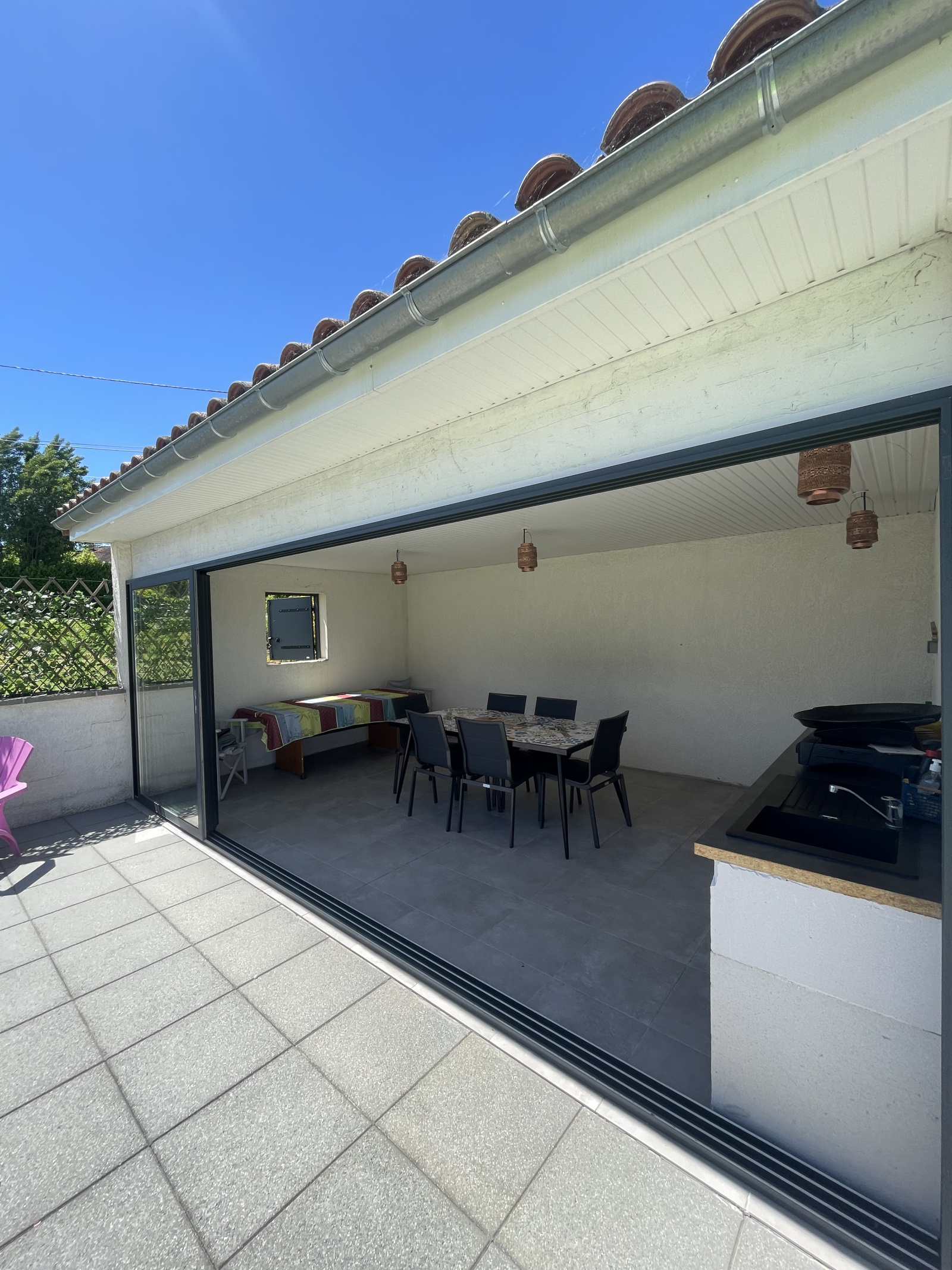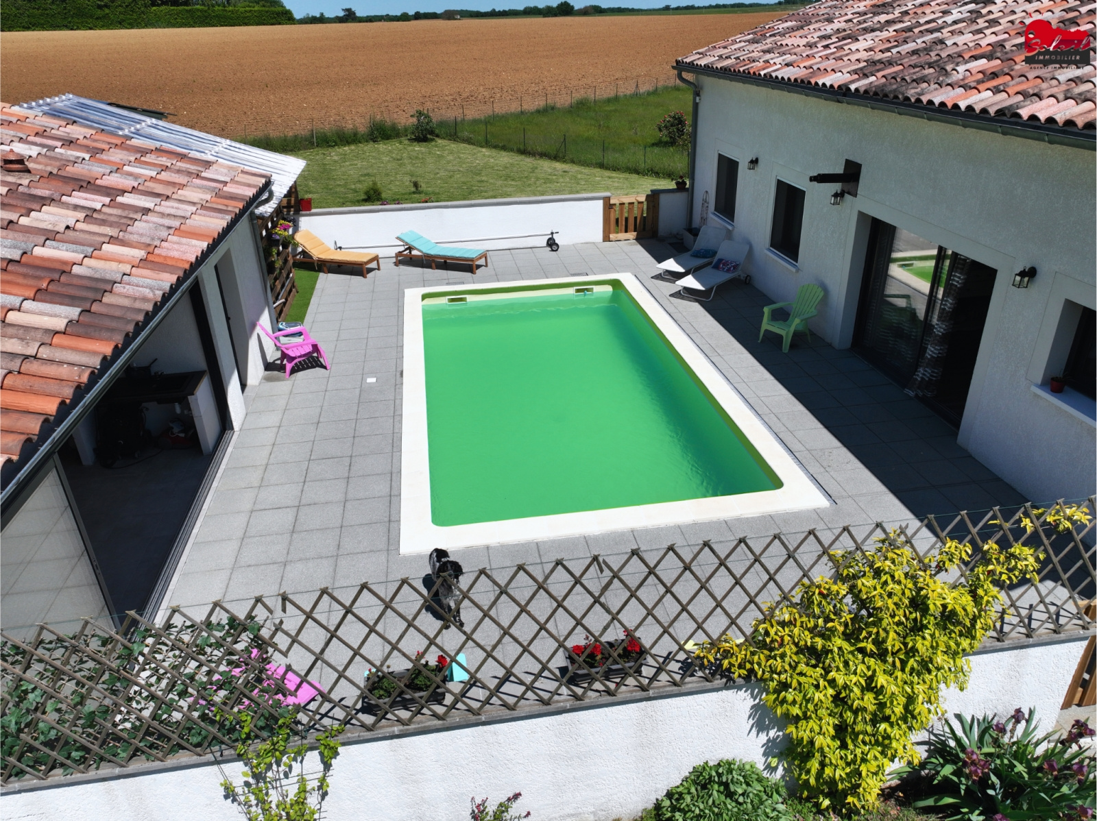 Emplacement idéal entre Villeneuve et Agen pour cette maison de plain-pied d'environ 124m² édifiée en 2016 offrant une véranda de 13m² desservant une entrée avec placard un séjour salon cuisine équipée de 42.5m² (33,2m² + 9,3m²), trois chambres de 12m²,12m²,8.50m² dont deux avec placards, une salle d'eau, un cellier de 5m² attenant à la cuisine avec chauffe-eau thermodynamique, garage avec baie vitrée carrelé et isolé de 16.67m². À l'extérieur, une terrasse de 95m² avec piscine 8/4 au sel et pompe à chaleur, spa, 4 personnes, pool house de 22m² (cuisine d'été+local technique+WC+douche). Très grand parking en béton lavé pouvant recevoir un camping-car