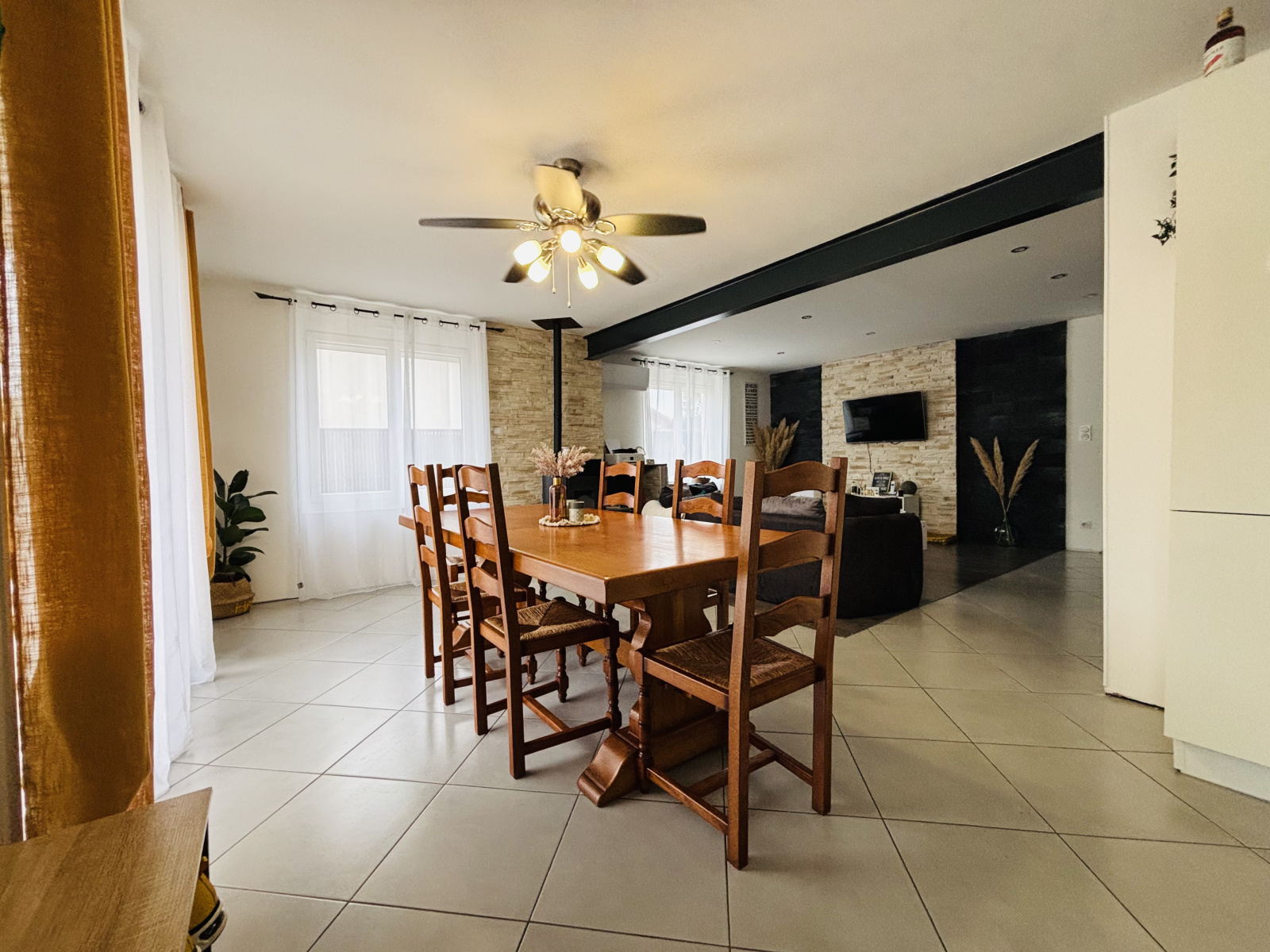Cette maison de plain-pied a bénéficié d’une rénovation complète il y a quatre ans. Elle offre une surface habitable bien répartie et un agencement fonctionnel, parfaitement adapté à une vie de famille. Située à proximité immédiate des commodités, des écoles et des transports, elle permet un quotidien pratique sans compromis sur le confort.