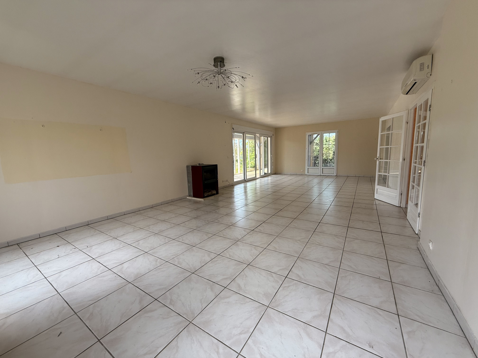A l'étage une chambre double de 45m², une salle d'eau WC de 5m², une chambre de18m² .Une mezzanine de distribution de 17m² .L'ensemble de la maison est chauffée par une chaudiére Wisemman au gaz , clim réversible et poele a bois menuiserie double vitrage.