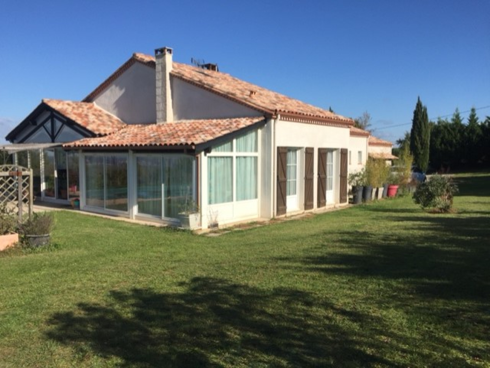 Très belle vue vue pour cette jolie maison des années 90 de construction traditionnelle d'une surface habitable de 277m² dont 197m² de plain-pied offrant une belle entrée de 13.76m²avec placards un séjour de 56m² avec un beau poele à bois , une cuisine équipée de 20m² .L'ensemble débouchant sur une terrasse véranda de 42m² chauffée .Dégagement de 9m², une première chambre suite avec salle de bain baignoire WC lavabo plus clim individuelle de18m² .WC indépendant , une deuxiéme chambre équipée avec salle d'eau de 10.90m², une troisiéme chambre 14.30m² avec salle d"eau wc de 6m².Une buanderie de 8m² et un double garage de 32m² (garage isolée double portes)