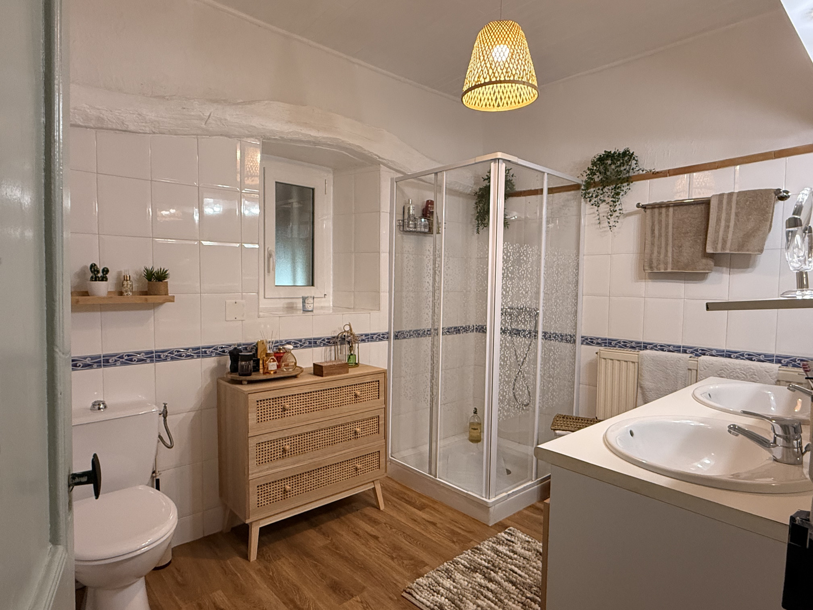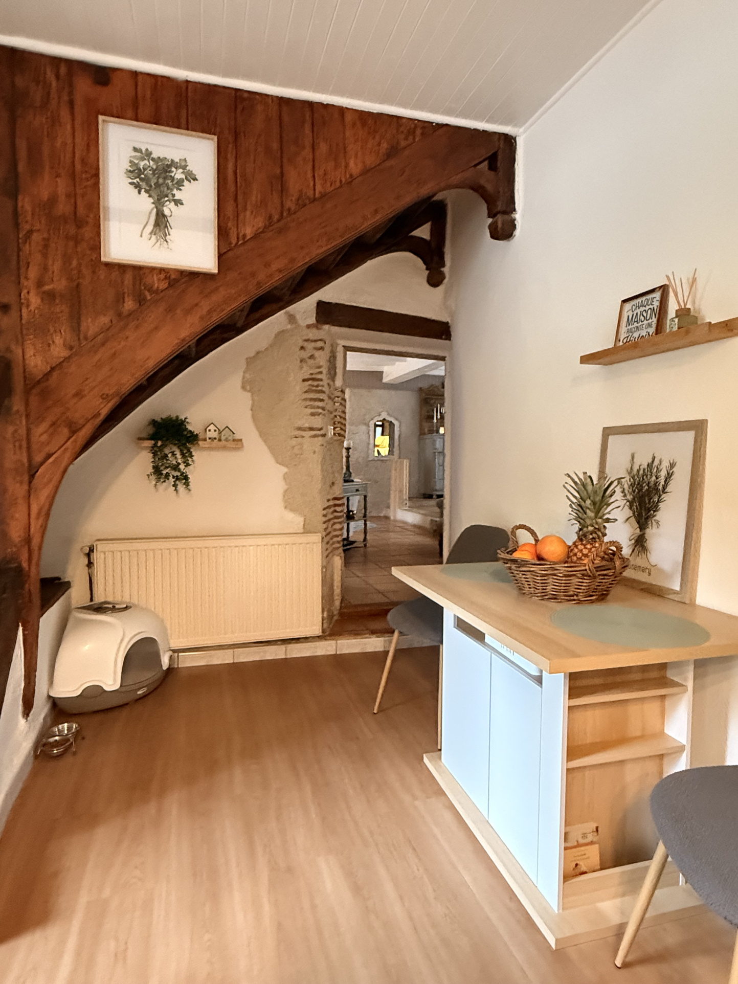 La maison comprend quatre chambres, une cuisine, deux salles d’eau, une salle à manger / séjour.