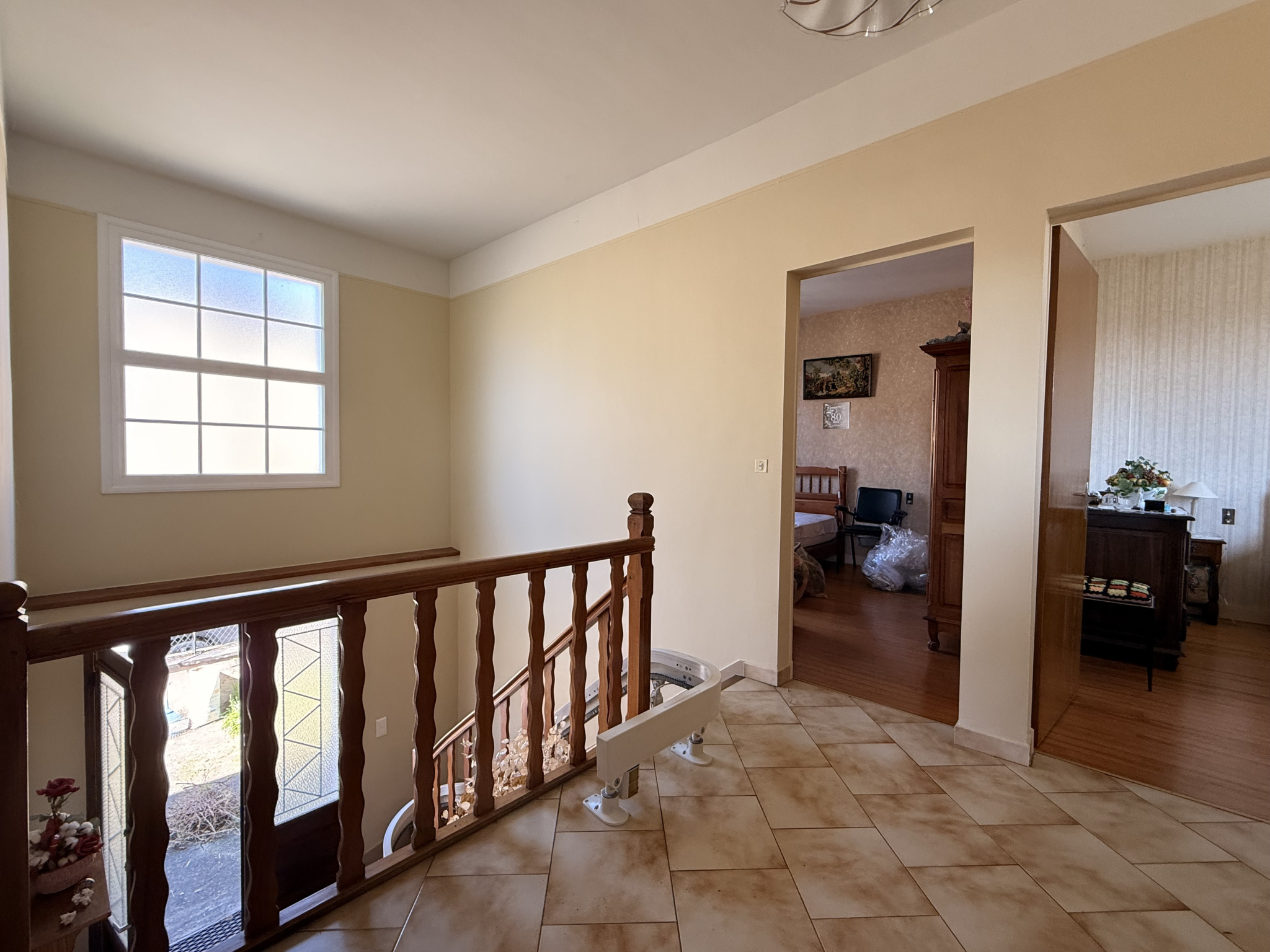 Un monte-escalier est installé, apportant un réel confort et facilitant l’accès à l’étage pour tous.