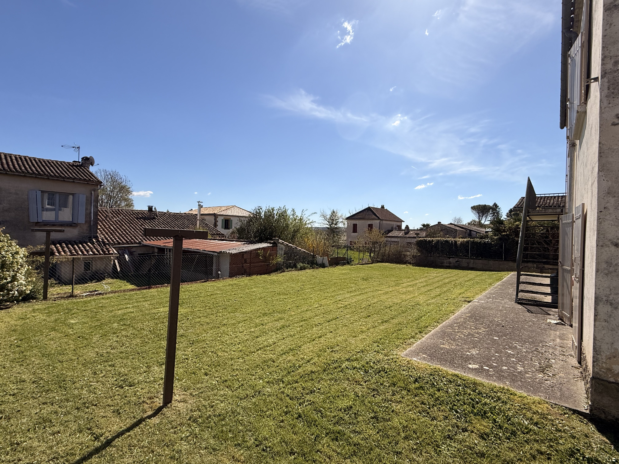 Atout rare : la configuration du terrain permet de faire le tour complet de la maison, un véritable privilège en cœur de village.