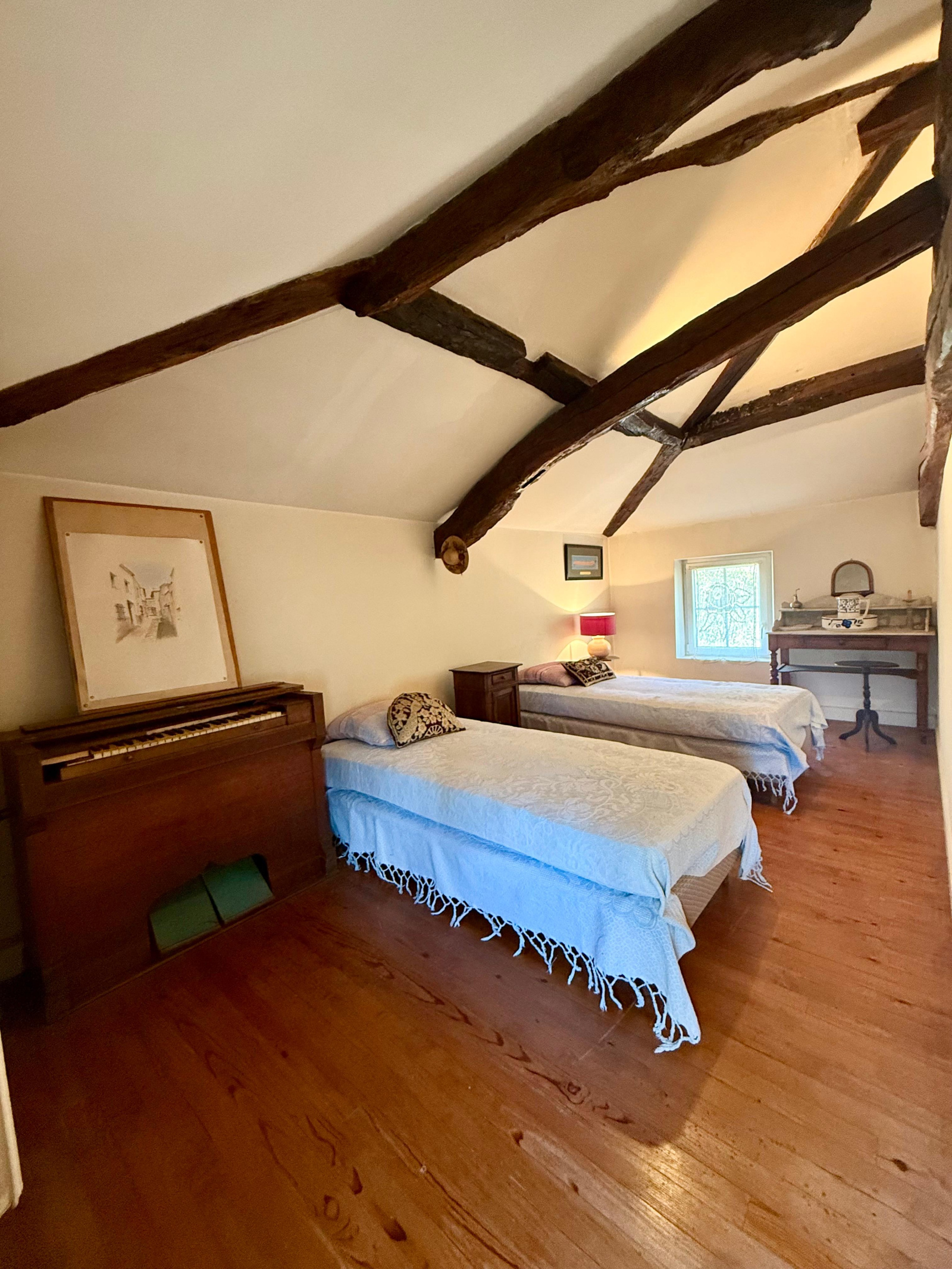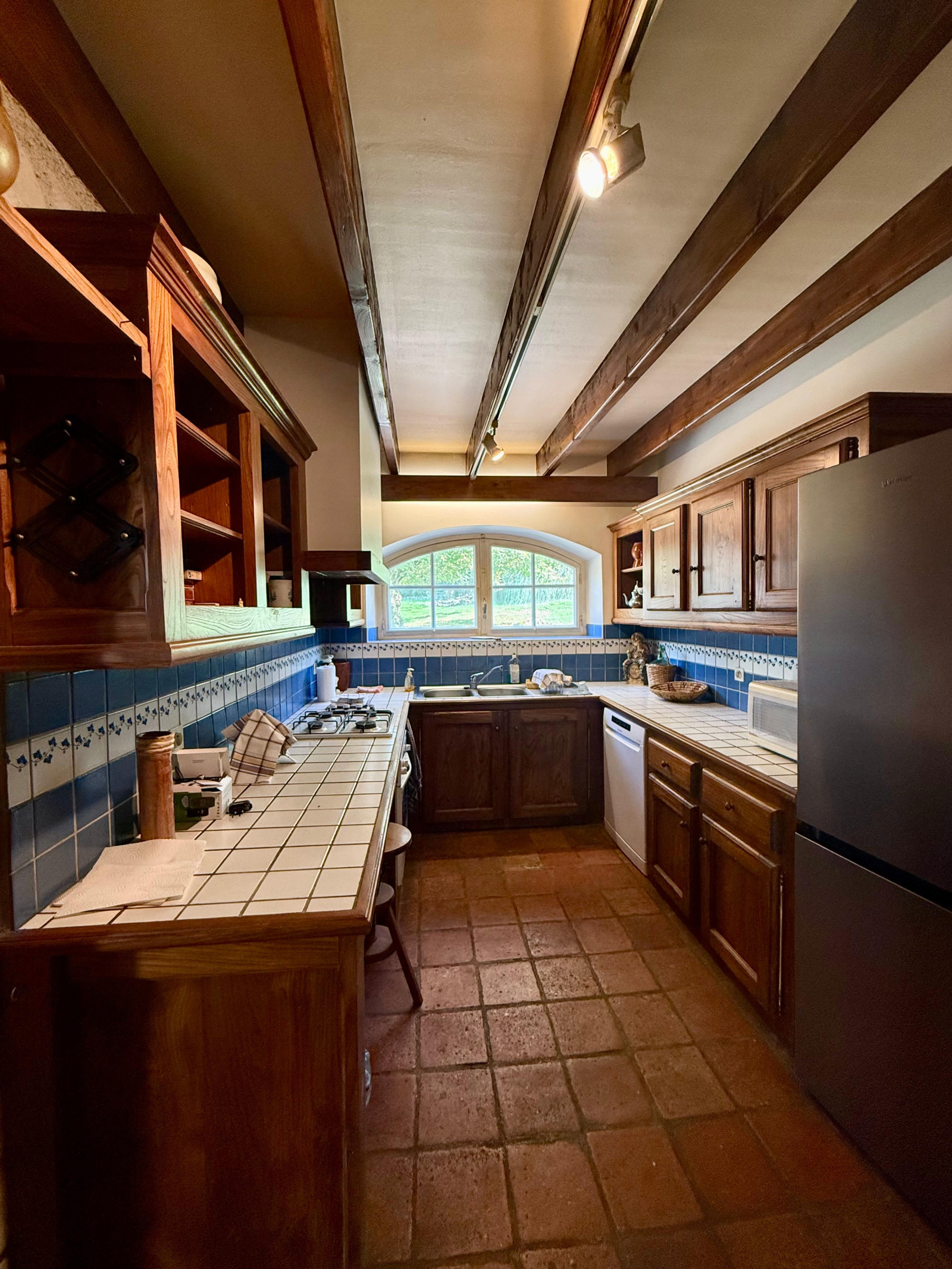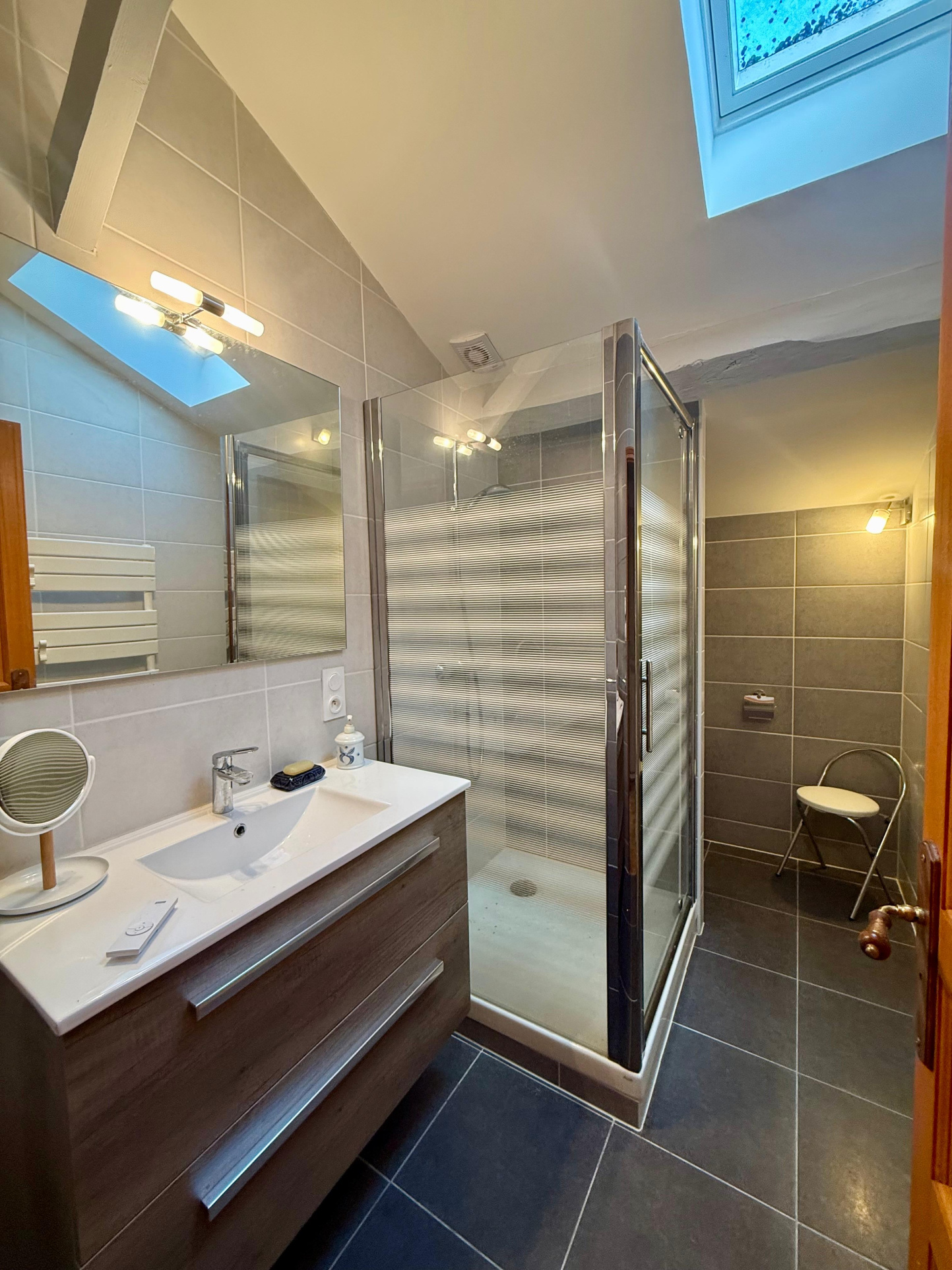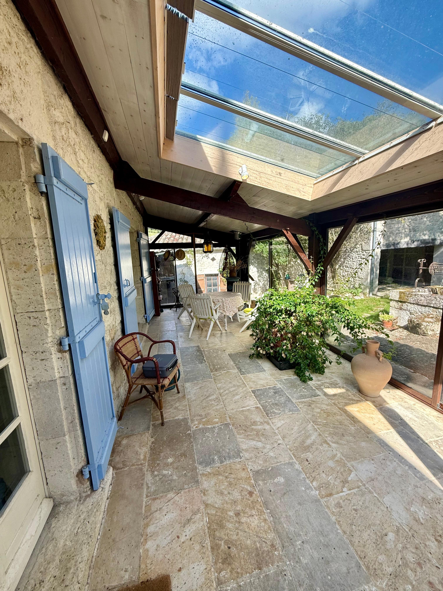 La maison principale, bâtie en pierre, offre de beaux volumes et une atmosphère chaleureuse. On y découvre une véranda ouvrant sur le jardin, un vaste salon séjour d’environ quarante-cinq mètres carrés avec cheminée, une cuisine équipée, ainsi qu’une chambre de quatorze mètres carrés disposant d’un dressing, d’une salle d’eau et d’un WC. À l’étage, une mezzanine d’environ vingt mètres carrés dessert une grande chambre de vingt mètres carrés, une seconde chambre, une salle d’eau avec WC et de nombreux rangements. Le confort est assuré par une pompe à chaleur récente complétée par un chauffage au gaz et au bois. La maison repose sur une cave, dans laquelle se trouve également une cave à vins, idéale pour les amateurs.