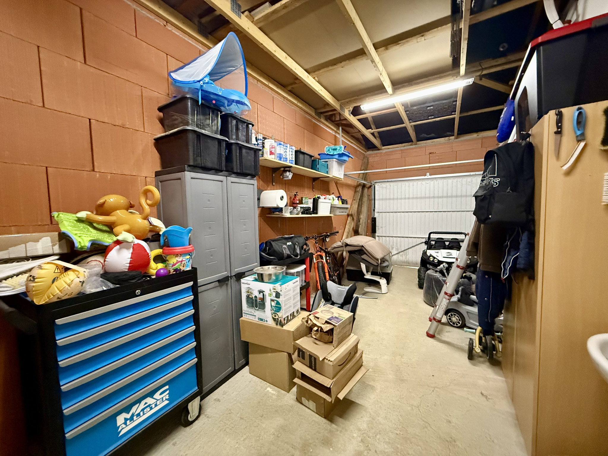 À l’extérieur, vous profiterez d’un jardin entièrement clôturé de 1 000 m², idéal pour la détente, le jardinage ou les moments en famille.