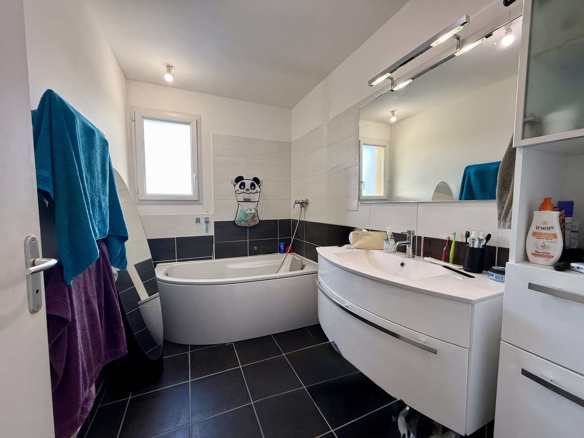 D’une superficie d’environ 71m² habitables, elle se compose d’une pièce de vie lumineuse, d’une cuisine fonctionnelle, de deux chambres, d’un bureau, d’une salle de bains et de toilettes indépendants.