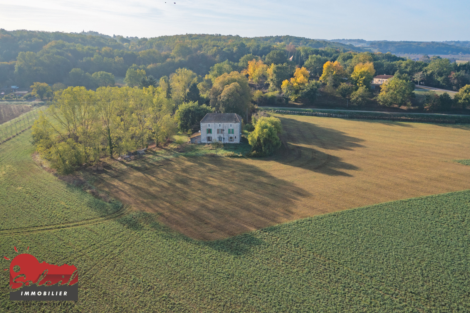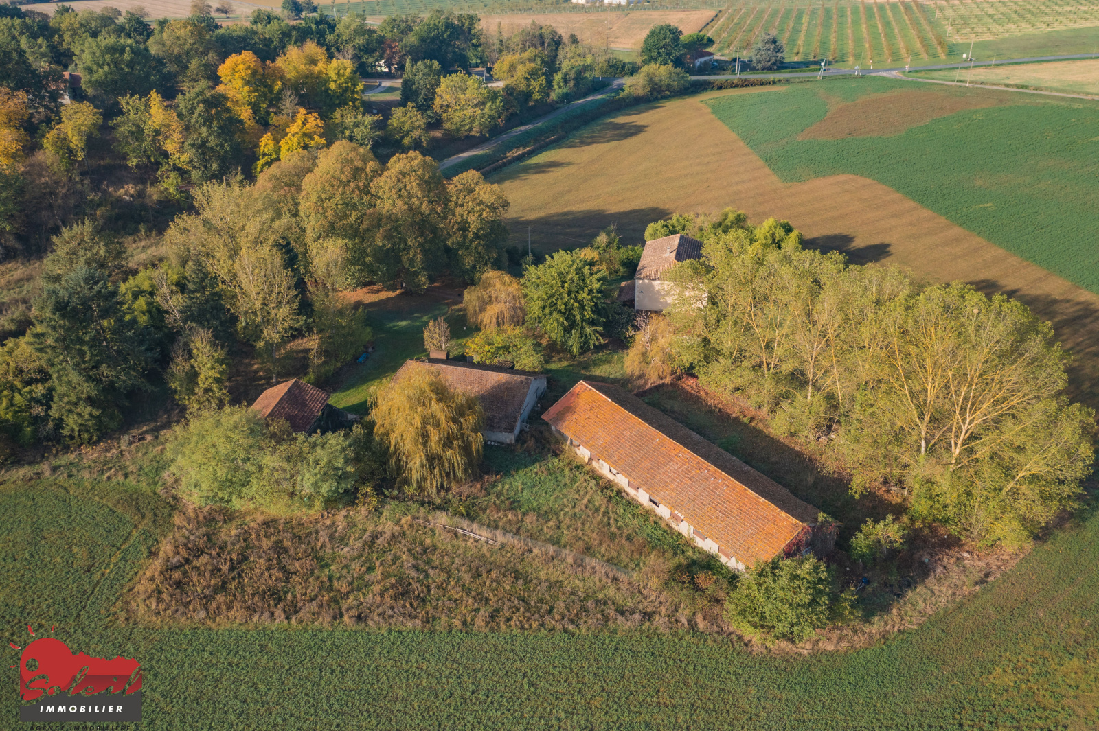 Idéalement situé à 10 minutes en voiture de toutes commodités, propriété agricole comprenant une maison d'habitation de 250m² offrant en RDC une verranda, entrée, salon séjour, cuisine, wc, et chambre avec salle d'eau. A l'étage un grand pallier de 31m² désservant 4 chambres une salle de bain et un wc.