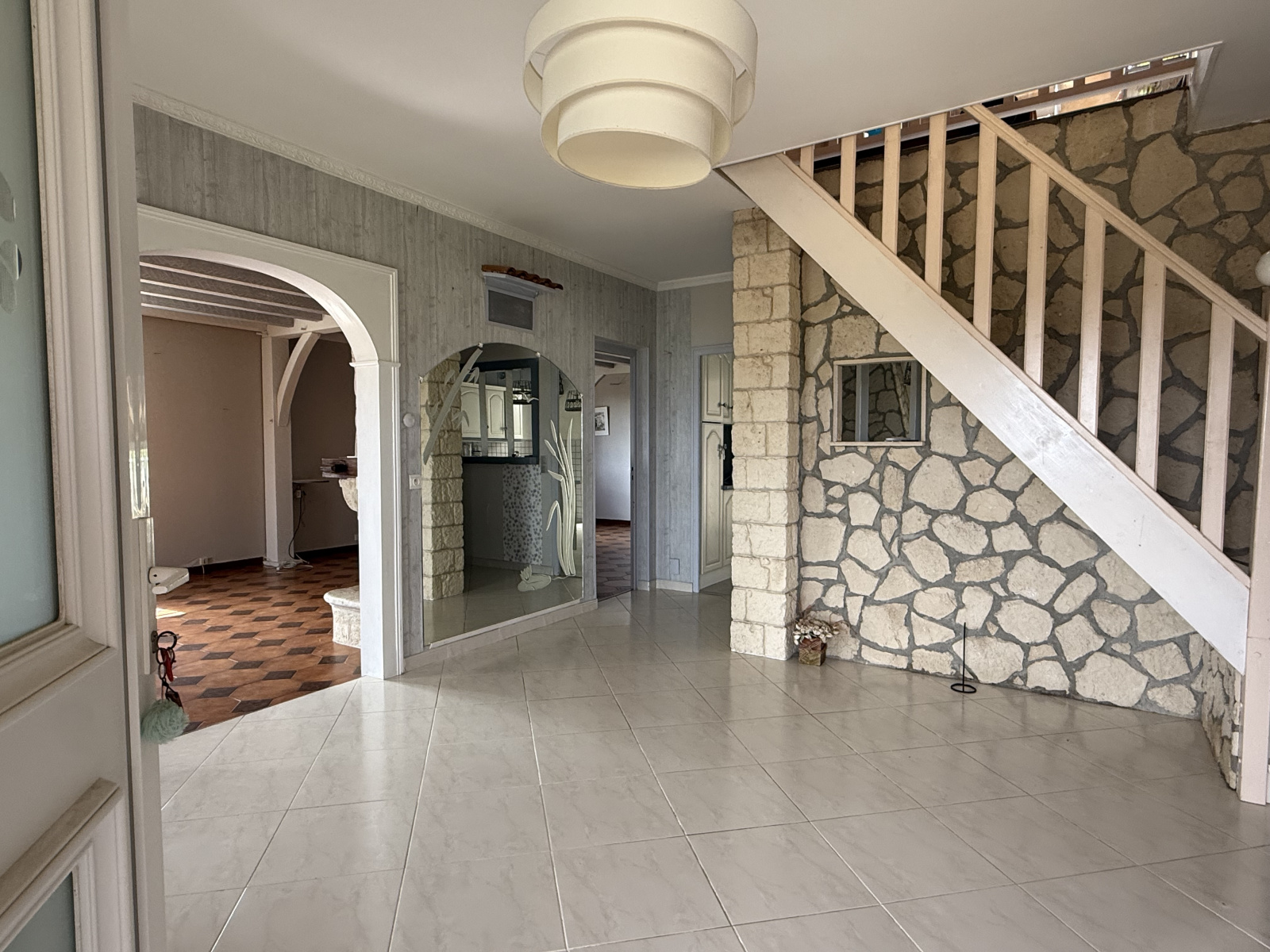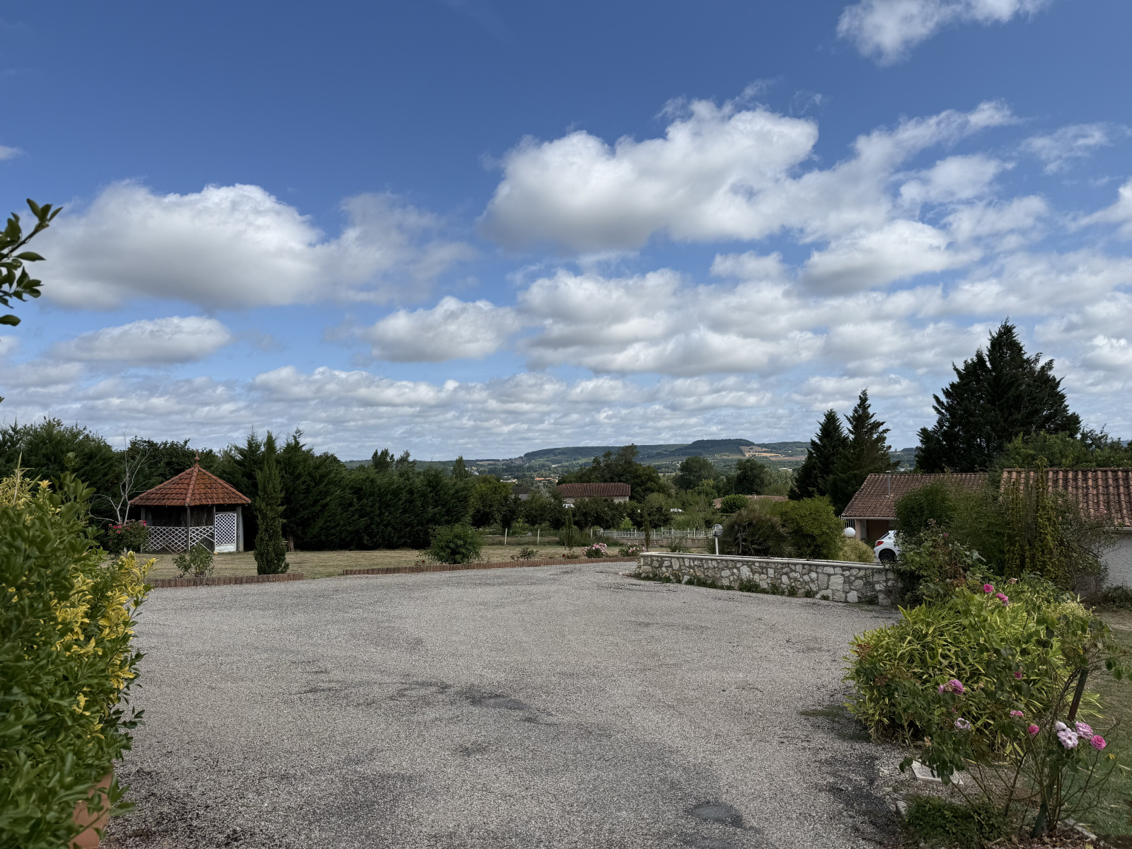Le terrain, soigneusement arboré et bien entretenu, entoure agréablement la maison et offre une atmosphère sereine et naturelle. La vue dégagée sur la campagne environnante apporte une sensation d’espace et de liberté très appréciable. Un puits complète les extérieurs, pratique pour l’arrosage du jardin et les besoins annexes.