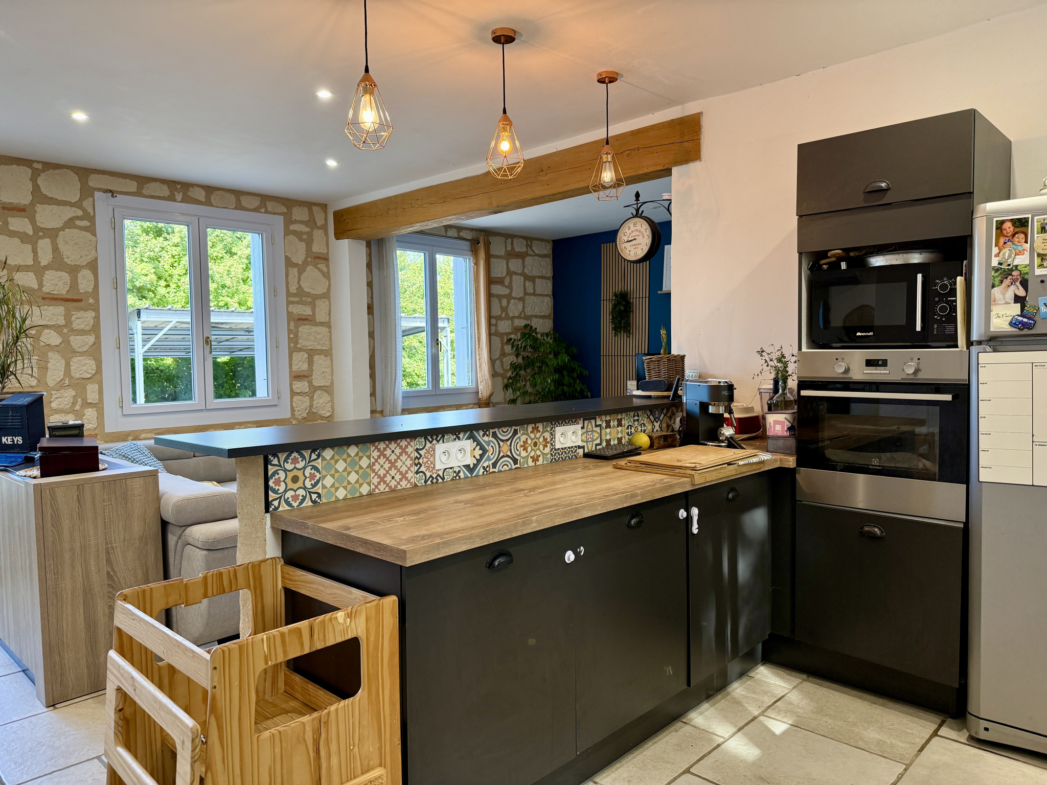 Elle se compose d’une belle pièce de vie spacieuse et baignée de lumière, agrémentée d’une cuisine ouverte moderne et fonctionnelle, idéale pour partager des moments conviviaux en famille ou entre amis.