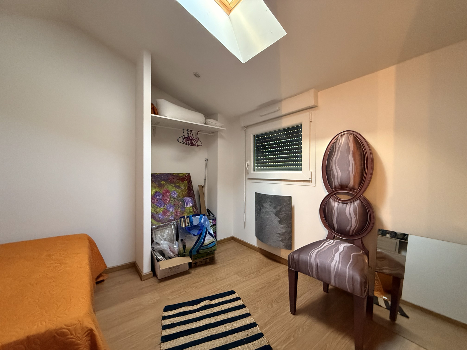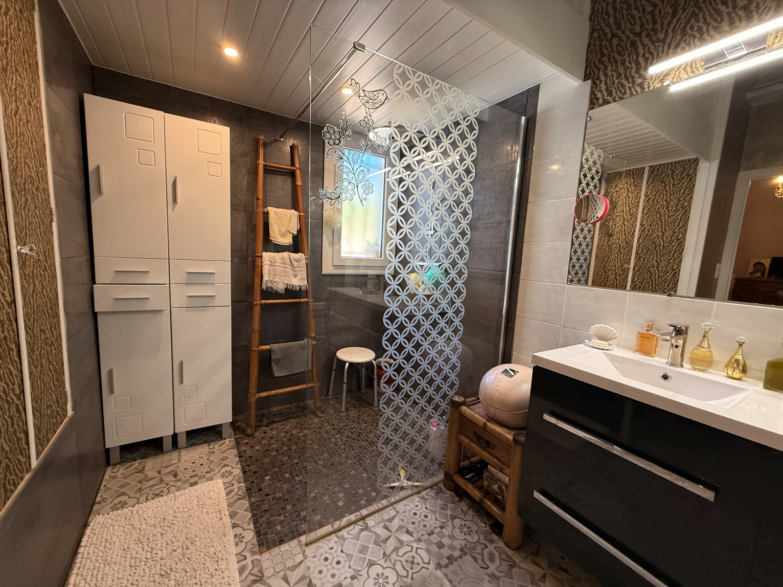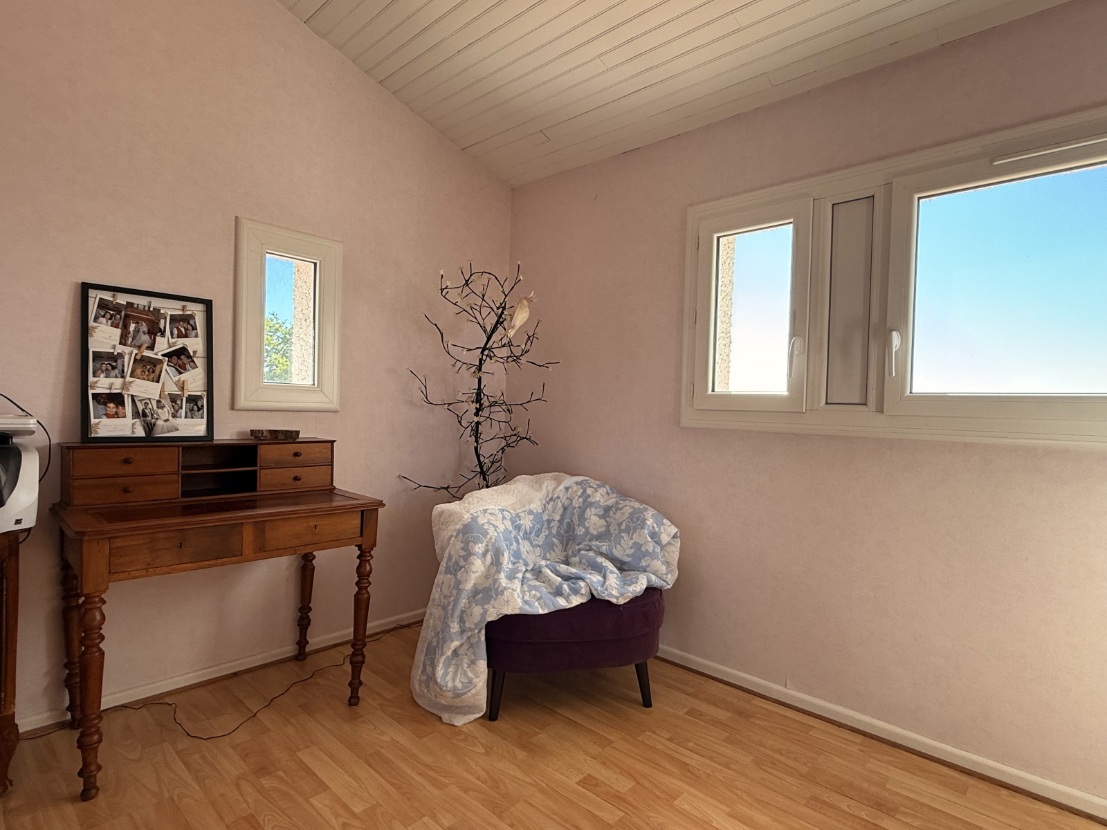 L’espace nuit a été conçu pour offrir intimité et fonctionnalité. Deux suites parentales disposent chacune de leur salle d’eau, dont l’une avec dressing. Une troisième chambre complète le rez-de-chaussée. À l’étage, un bureau et une pièce polyvalente permettent d’envisager différents usages : chambre d’amis, salle de jeux ou espace de télétravail.