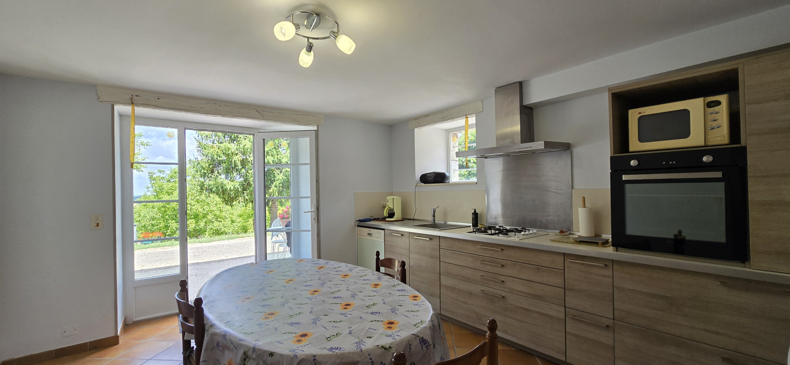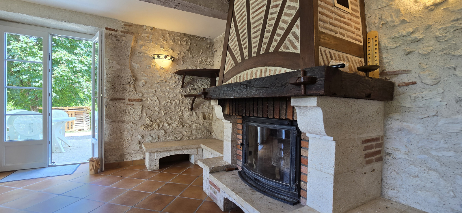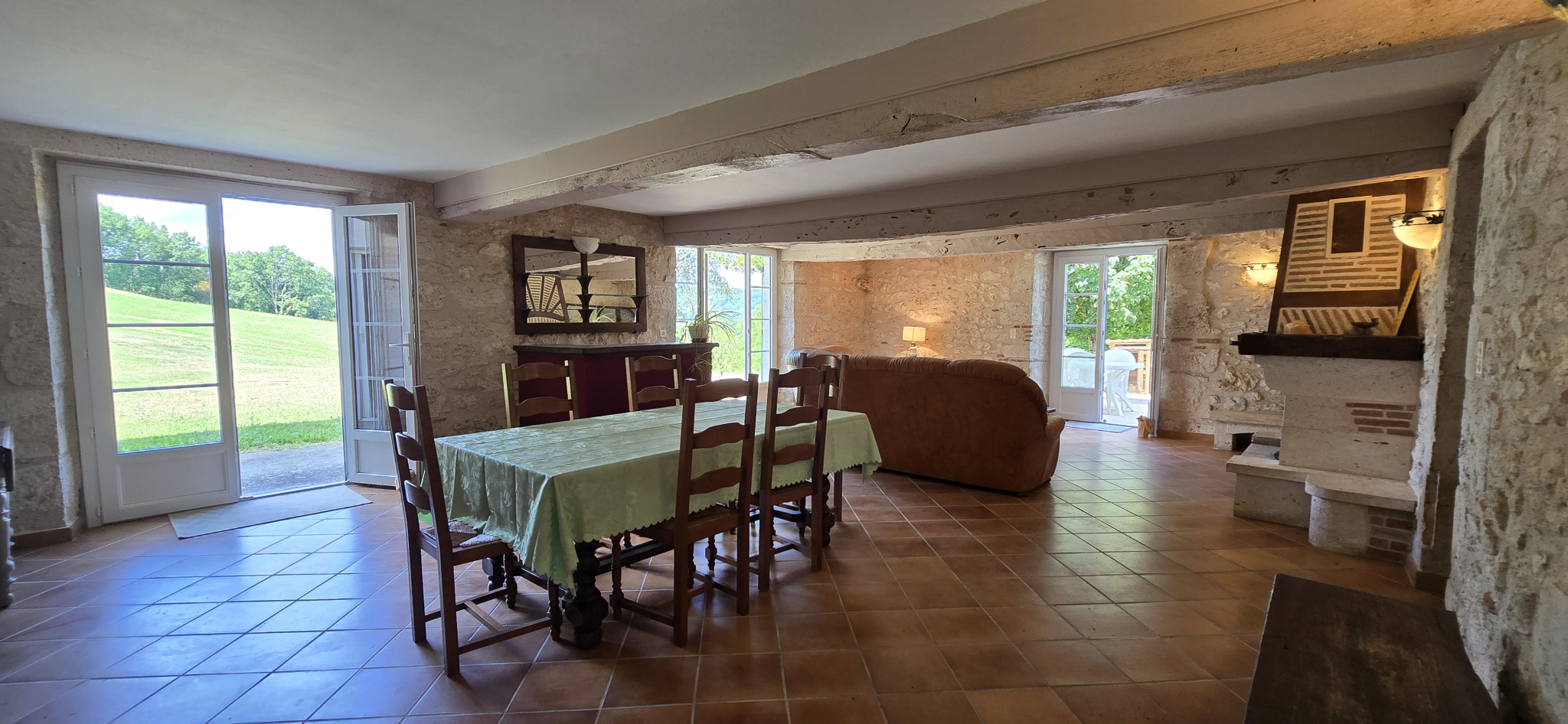 Niché au cœur d’un environnement calme et verdoyant, cet ensemble en pierre offre un cadre de vie rare et préservé, idéal aussi bien pour une résidence principale ou secondaire que pour un projet rural tel qu’un gîte, une activité agricole ou un accueil touristique. La maison d’habitation développe environ 160 m² habitables et propose quatre chambres allant de neuf à vingt-et-un mètres carrés, deux séjours lumineux aux poutres et pierres apparentes, une cuisine équipée donnant accès à la terrasse, une buanderie, deux toilettes indépendants ainsi qu’une salle de bain. Un grenier aménageable vient compléter l’ensemble et offre un potentiel supplémentaire considérable.