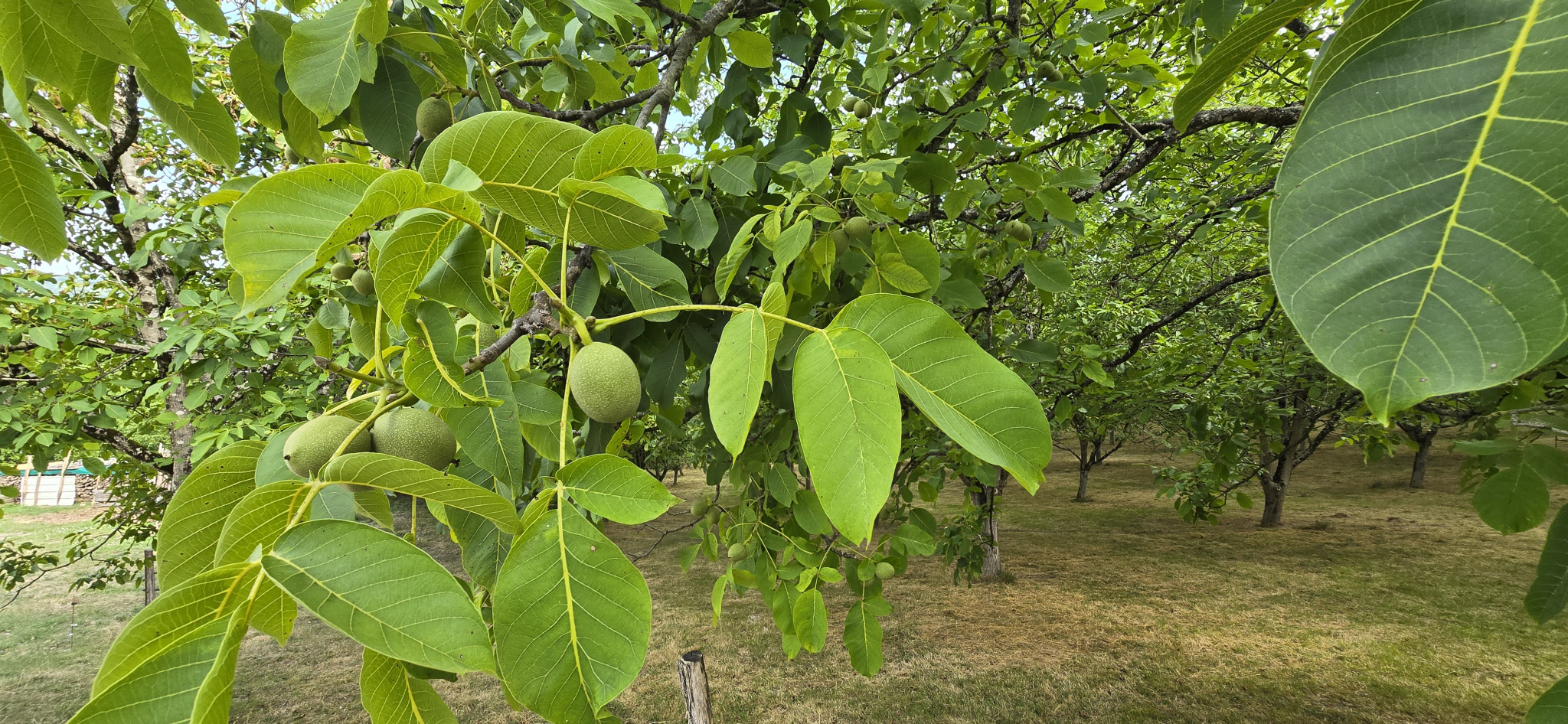 À l’extérieur, la propriété s’étend sur un terrain d’environ douze hectares et demi de nature préservée, sans aucun vis-à-vis, où l’on trouve un hangar, une dépendance en pierre ainsi qu’un magnifique pigeonnier. Un verger de noyers en production sur deux hectares et demi ainsi que deux sources naturelles apportent un attrait supplémentaire à ce lieu plein de charme.