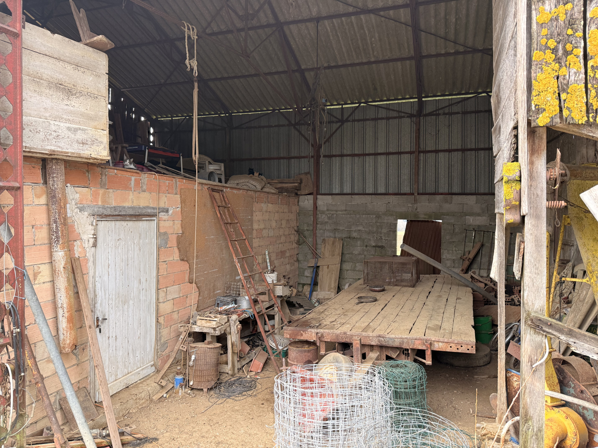Plusieurs dépendances complètent la propriété, dont un hangar d’environ 130 m², une grange en pierre d’environ 400 m² à rénover, ainsi qu’un hangar en béton d’environ 250 m², offrant de vastes volumes pour du stockage, une activité agricole ou un projet de réhabilitation.