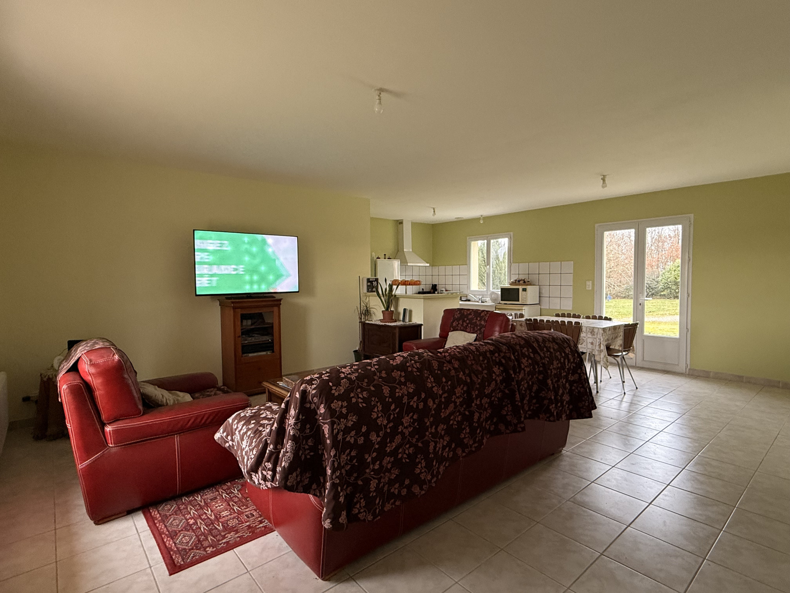 Cette propriété implantée sur un terrain d’environ 2 600 m², la maison de plain-pied se compose d’un espace de vie lumineux ouvert sur l’extérieur, de trois chambres confortables et d’une salle d’eau fonctionnelle.